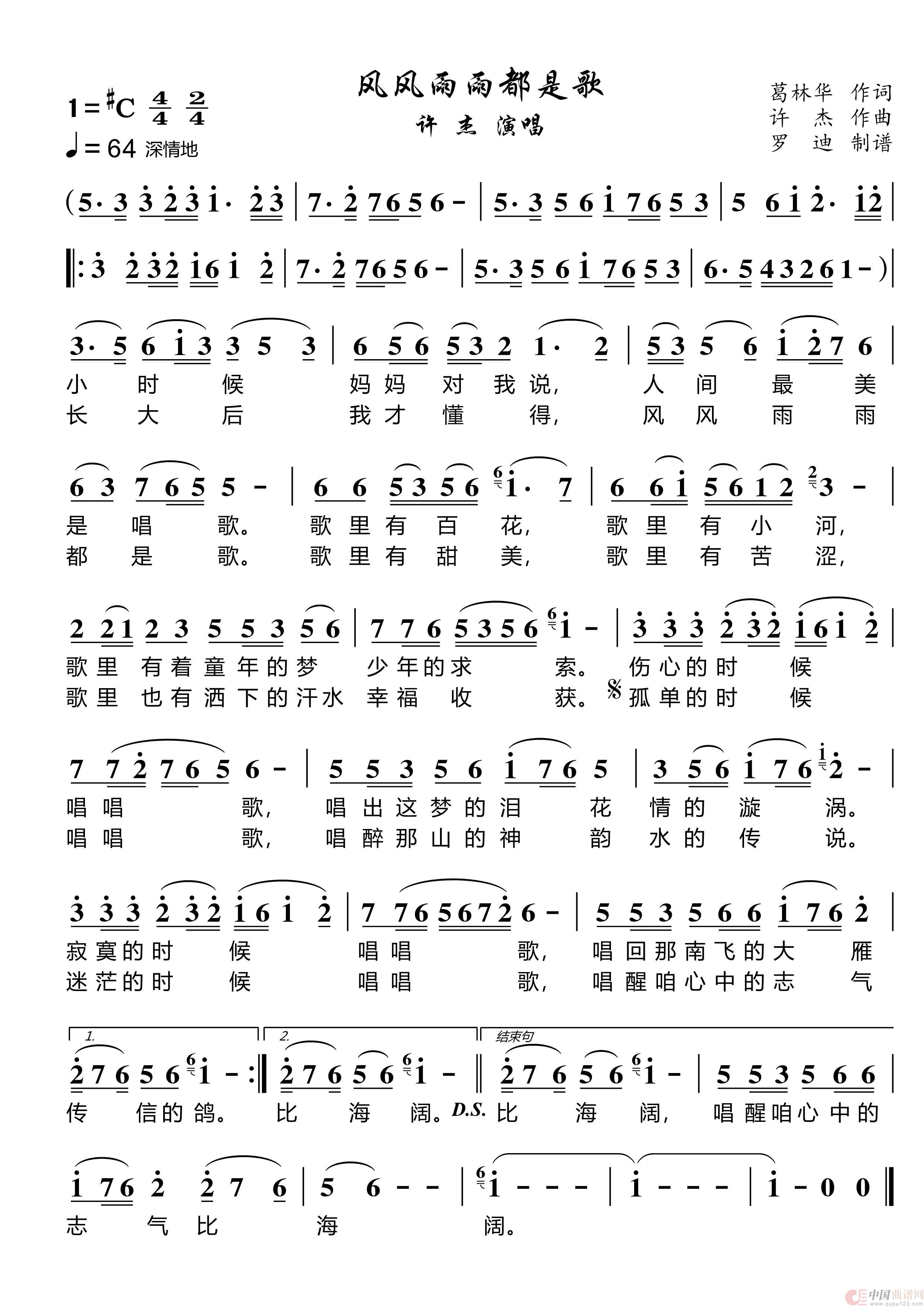 关于《风风雨雨都是歌》曲谱的评论