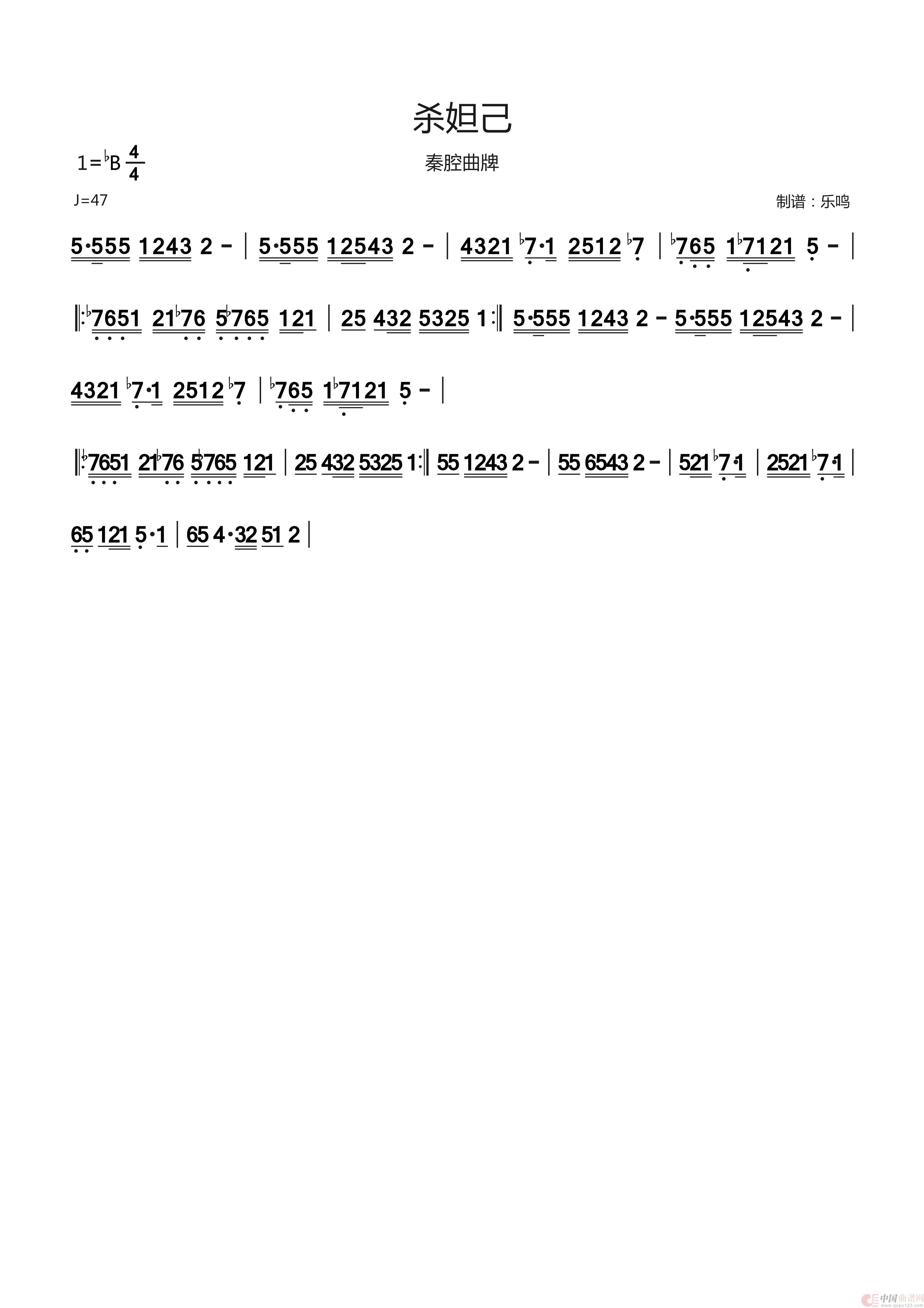 杀妲己(秦腔曲牌)(1)_原文件名:杀妲己(2个版本曲谱).jpg