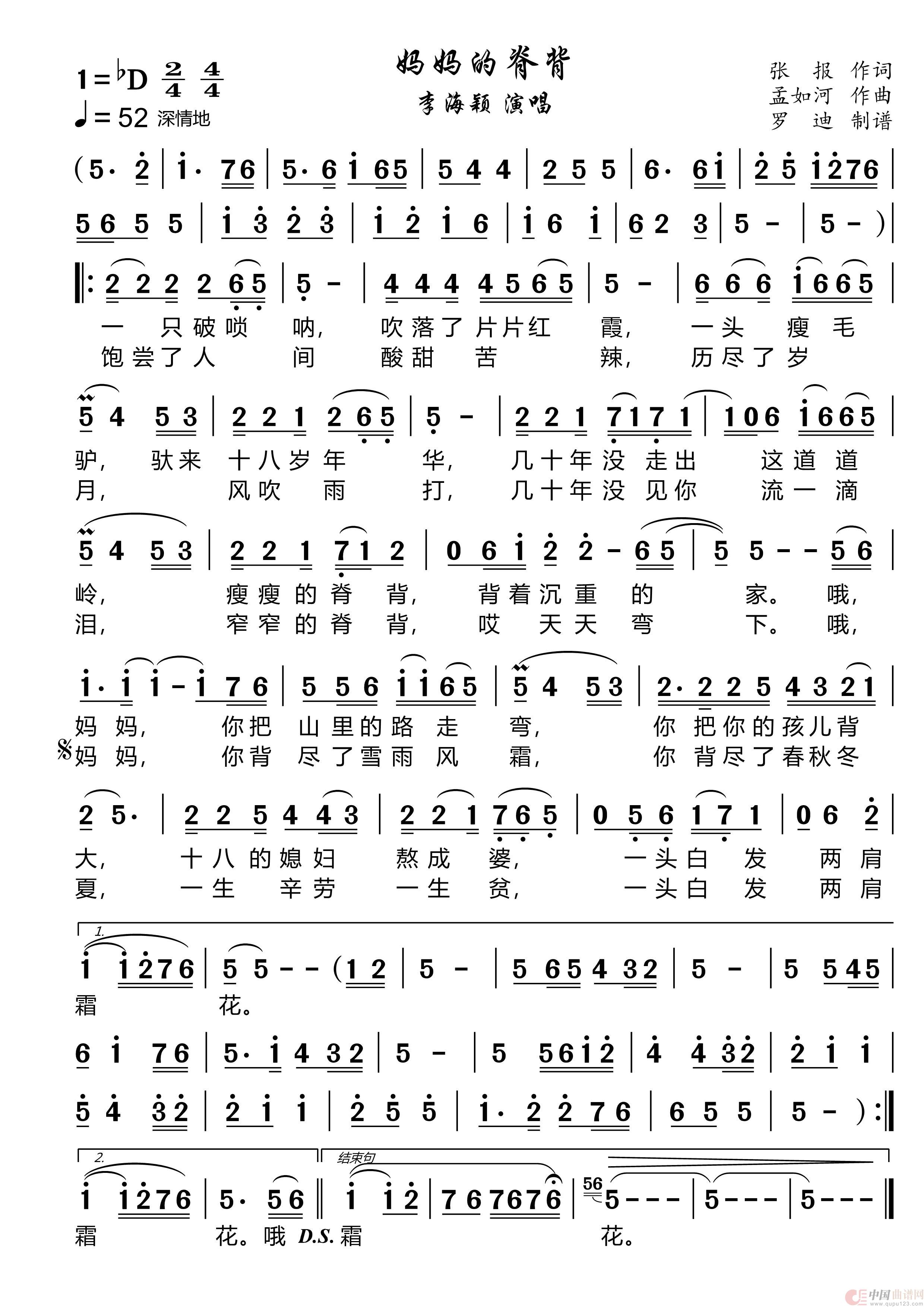关于《妈妈的脊背》曲谱的评论