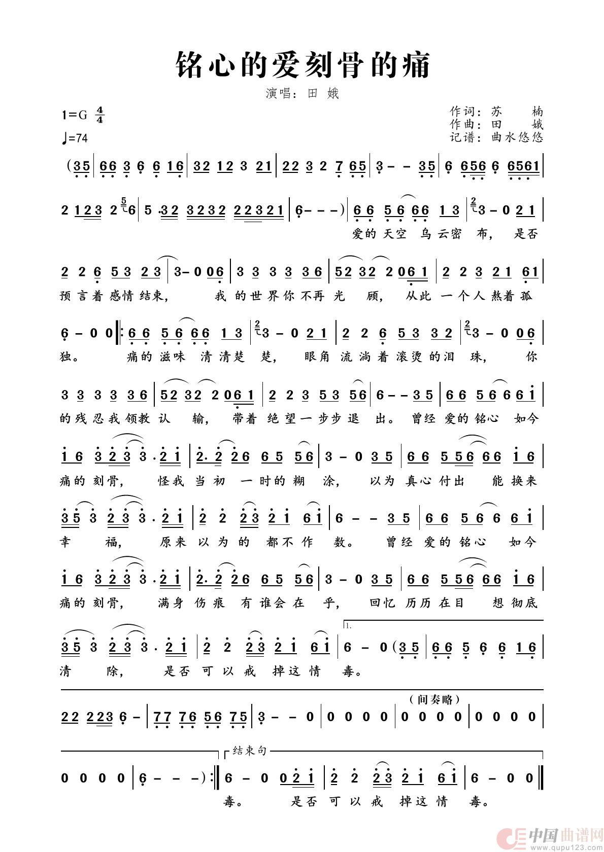 关于《铭心的爱刻骨的痛》曲谱的评论