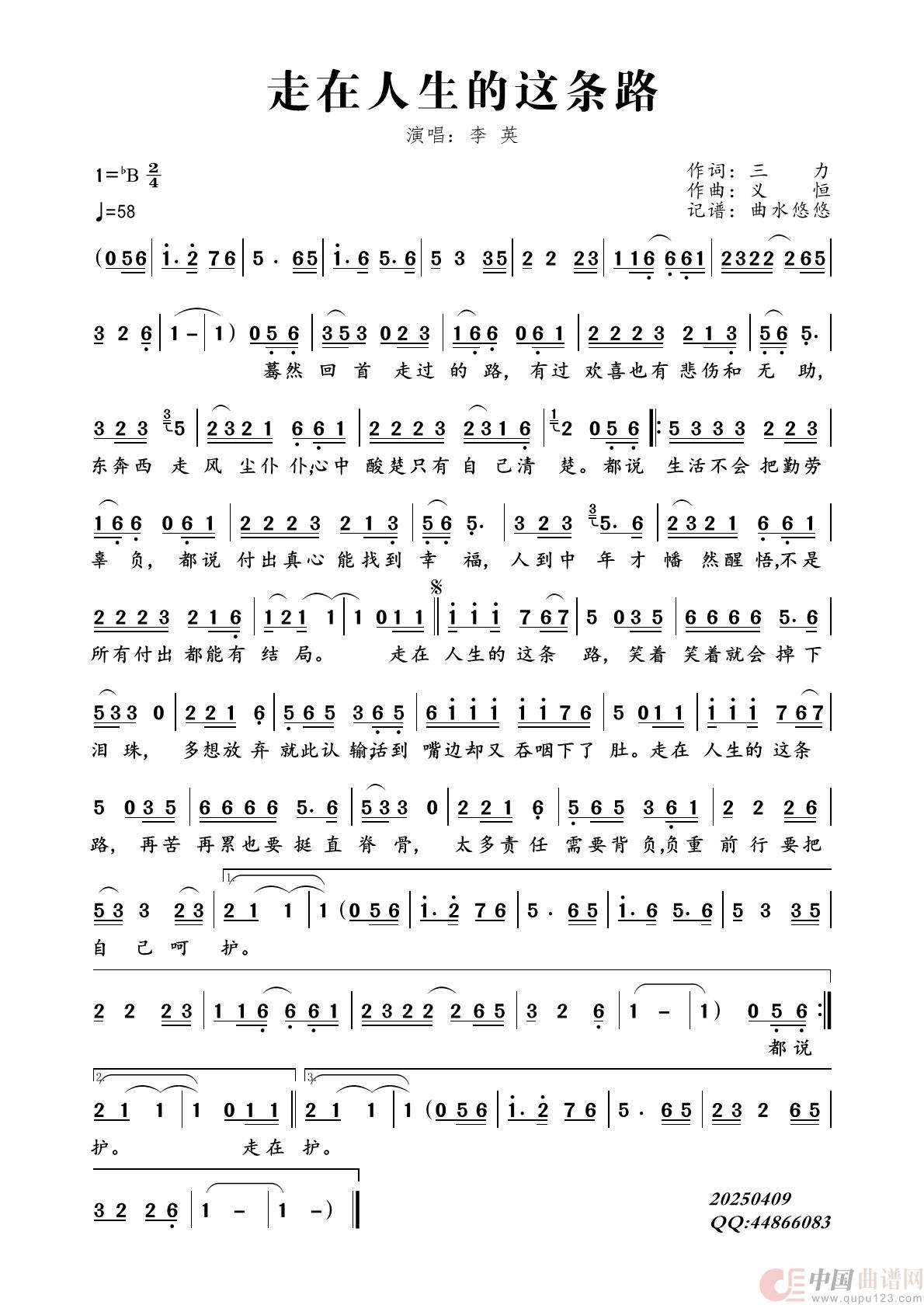 关于《走在人生的这条路》曲谱的评论