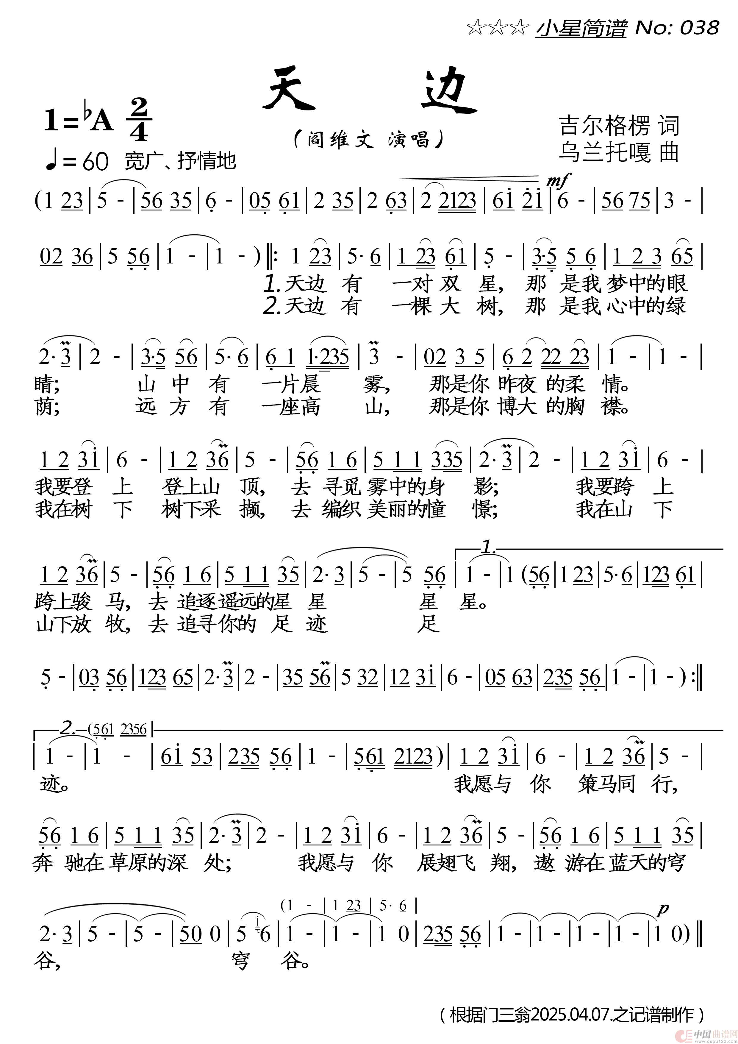 关于《天边》曲谱的评论