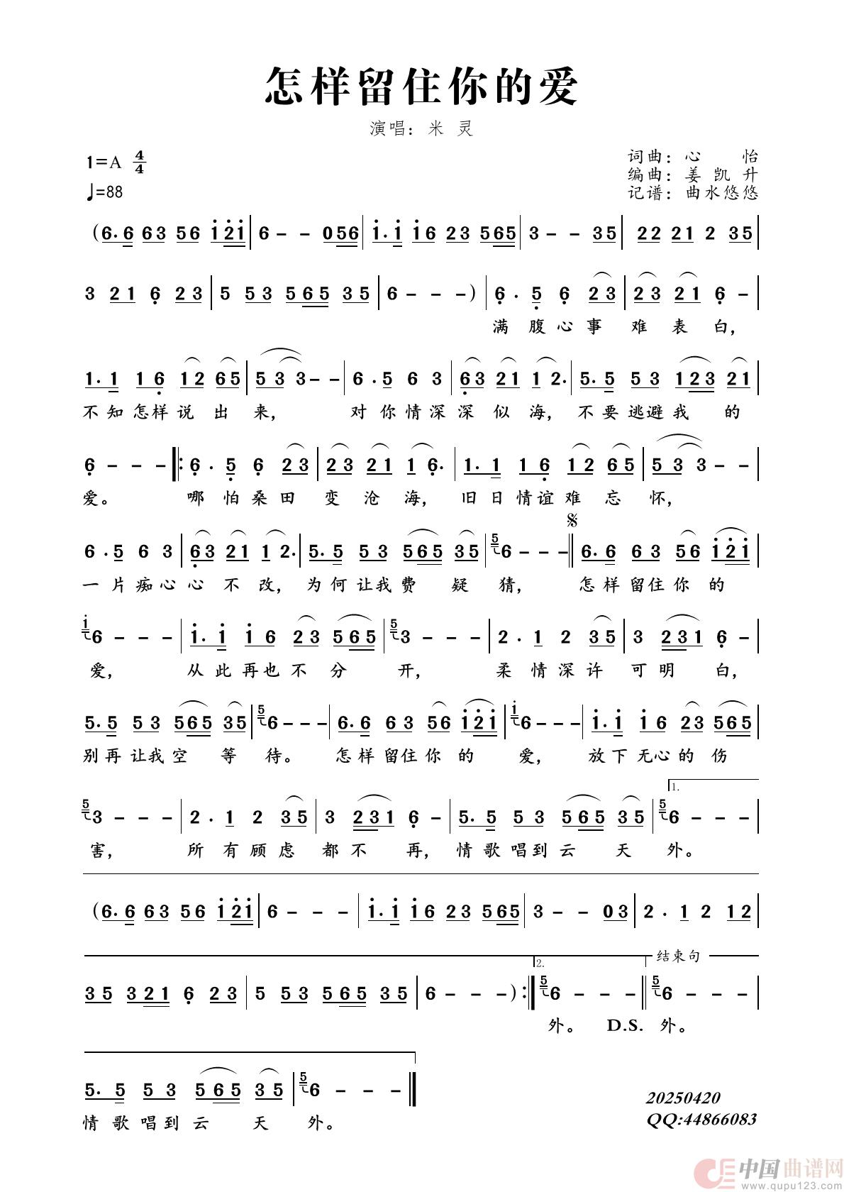 关于《怎样留住你的爱》曲谱的评论