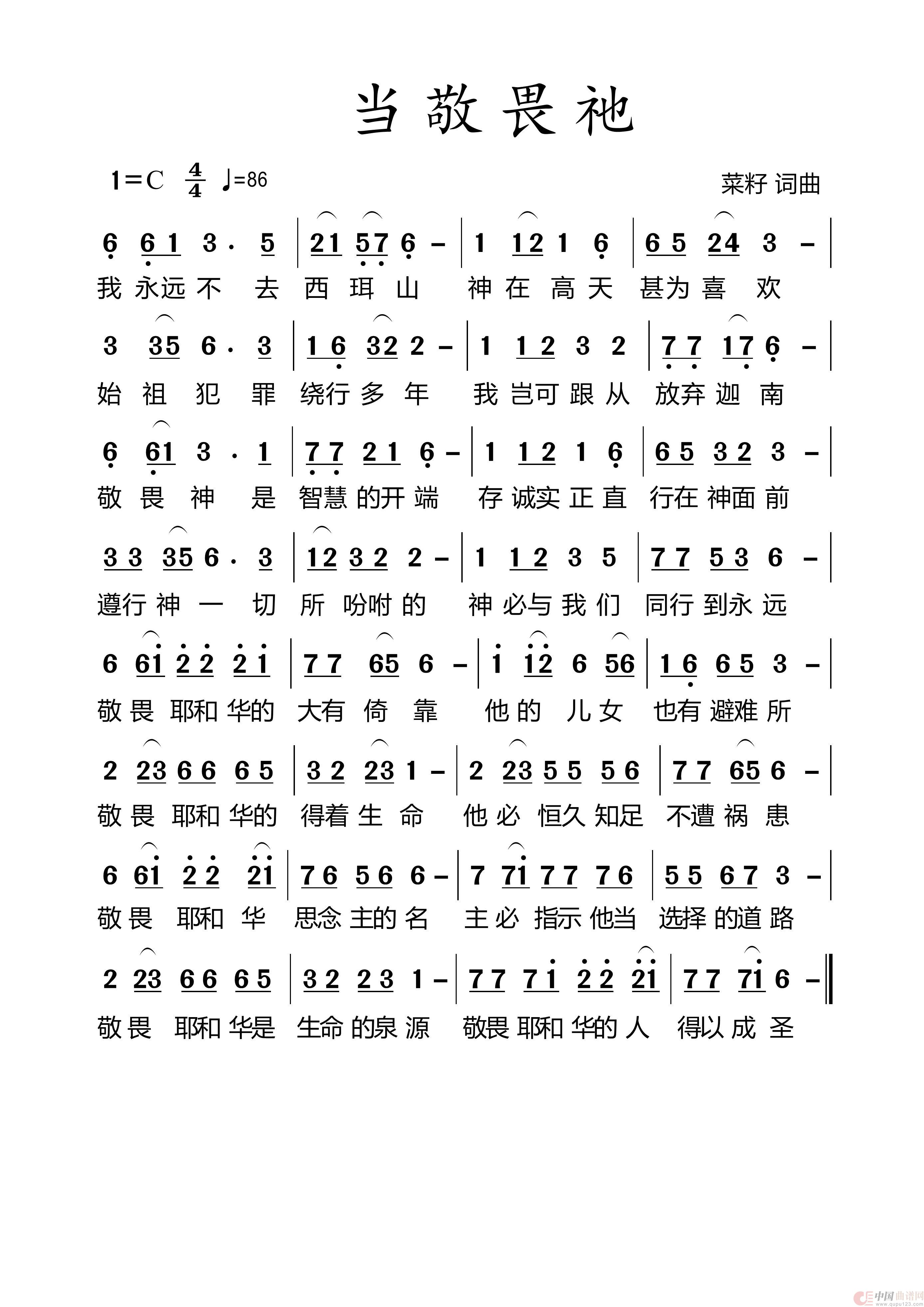 关于《693当敬畏祂》曲谱的评论