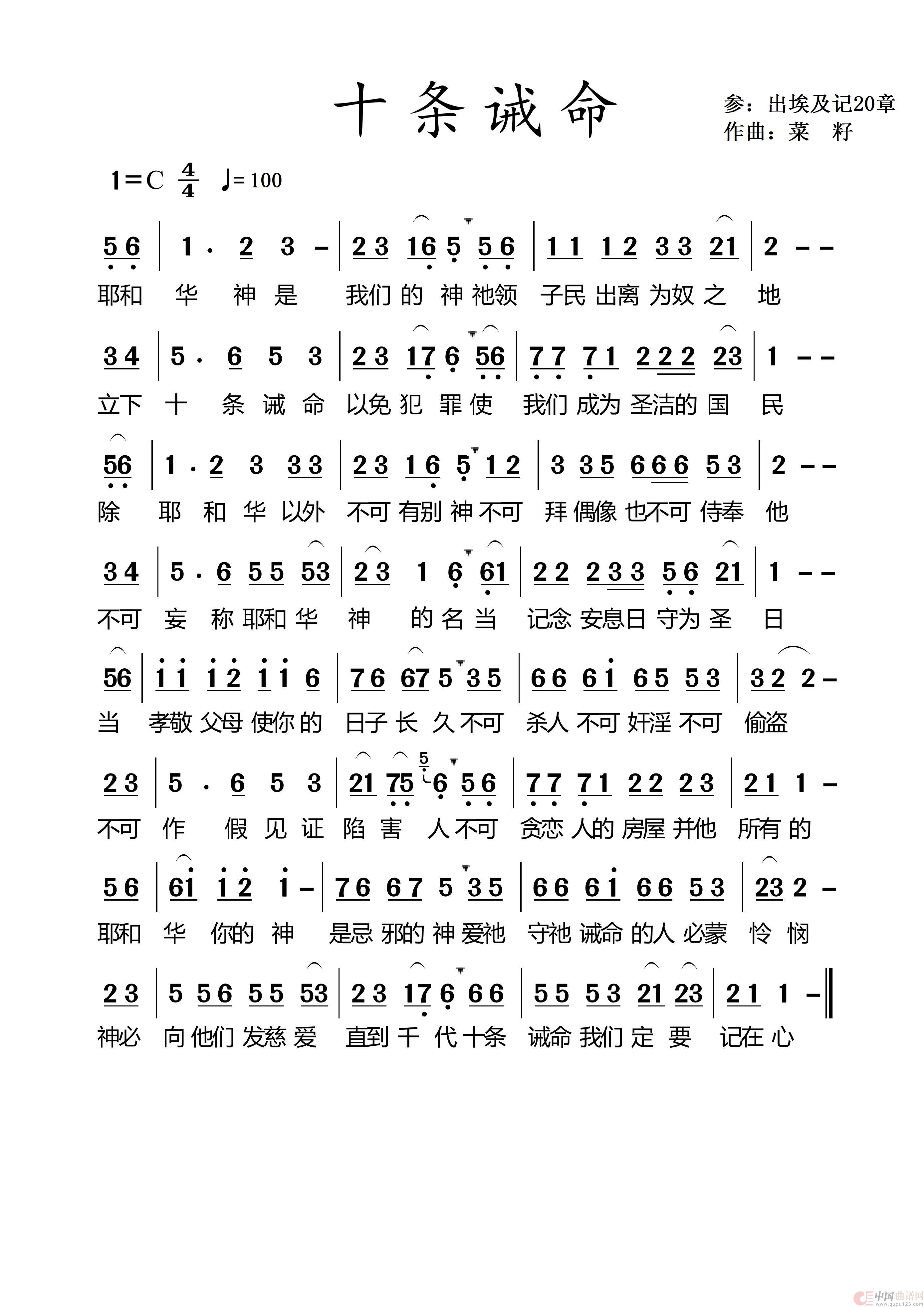 关于《697十条诫命》曲谱的评论