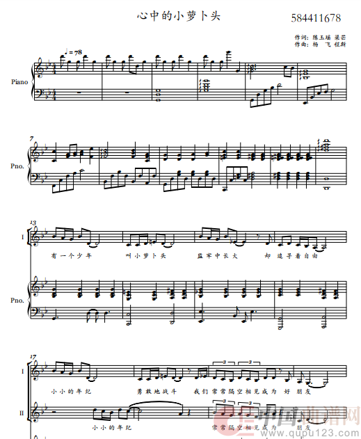 提示:在曲谱图片上单击右键,选择"图片另存为..."即可将曲谱保存到您的电脑中,打印时候可将图片插入到WORD中,调整合适大小打印即可。