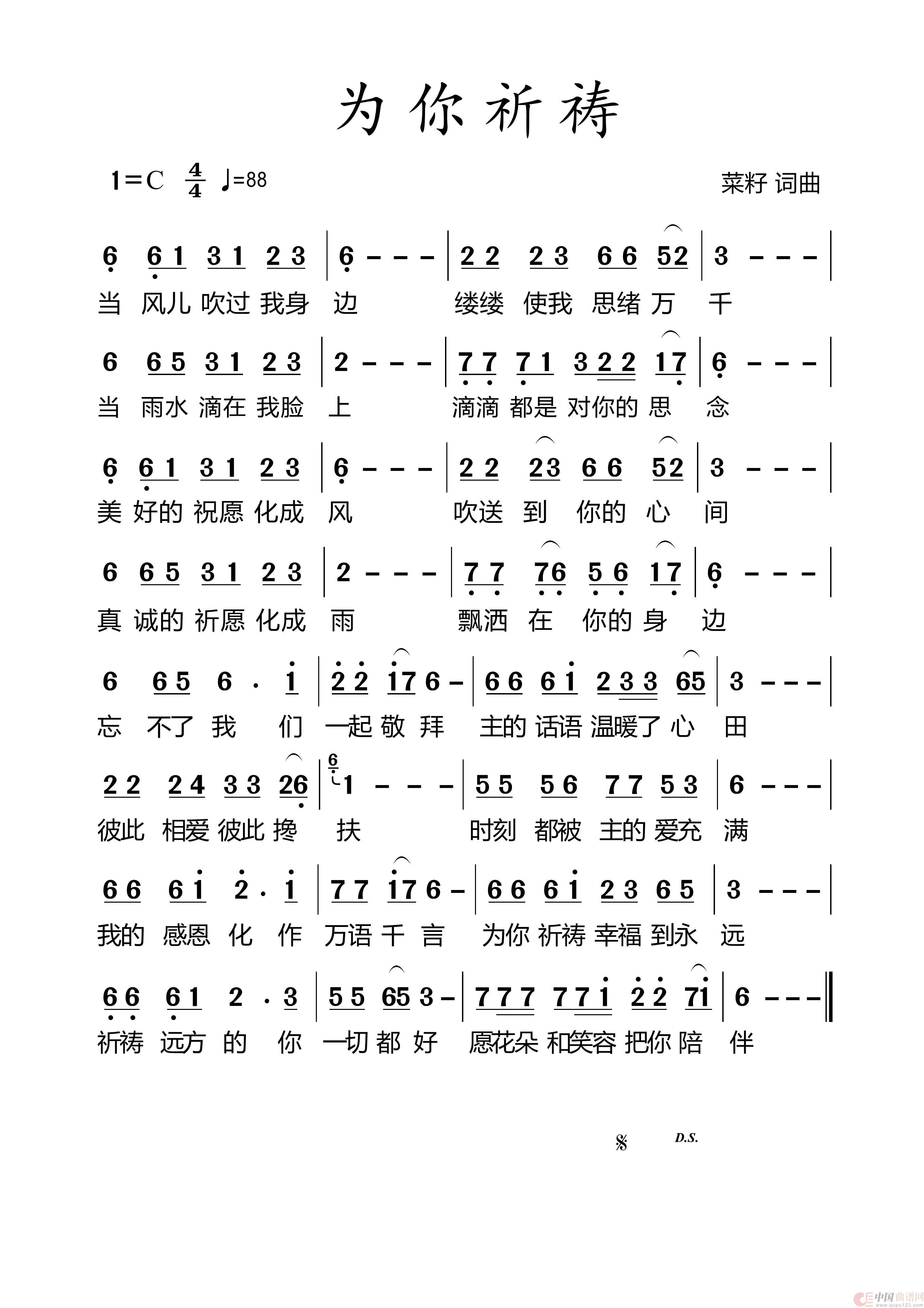 关于《701 为你祈祷》曲谱的评论