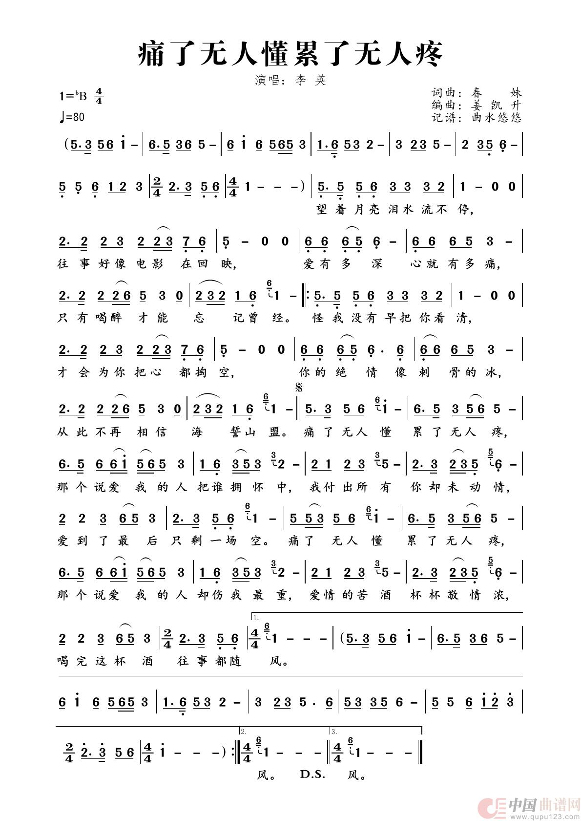 关于《痛了无人懂累了无人疼》曲谱的评论