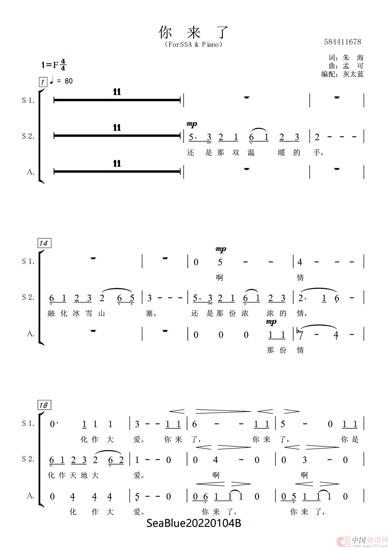 提示:在曲谱图片上单击右键,选择"图片另存为..."即可将曲谱保存到您的电脑中,打印时候可将图片插入到WORD中,调整合适大小打印即可。