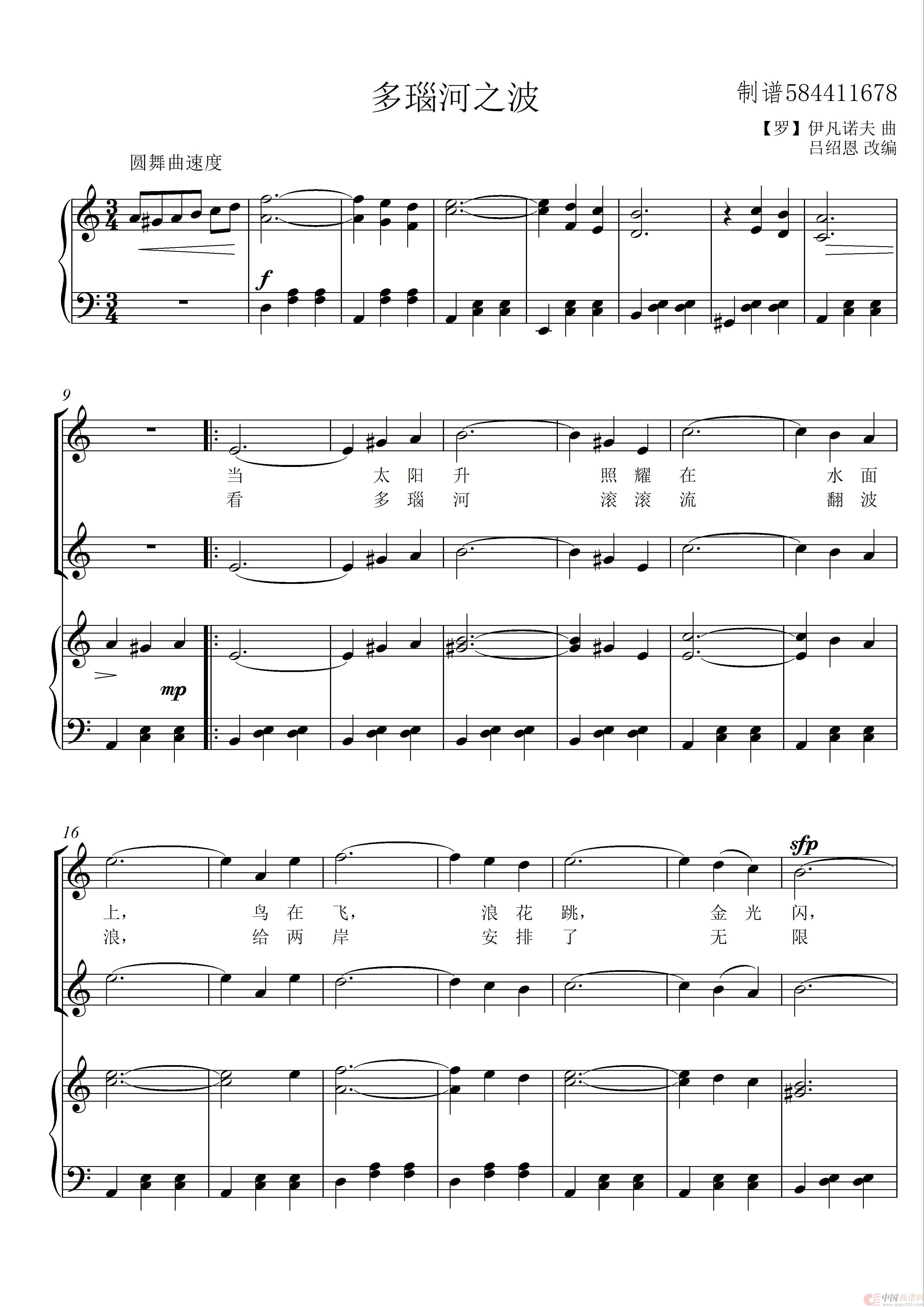 提示:在曲谱图片上单击右键,选择"图片另存为..."即可将曲谱保存到您的电脑中,打印时候可将图片插入到WORD中,调整合适大小打印即可。