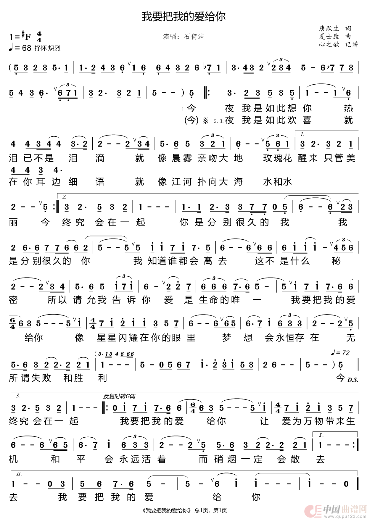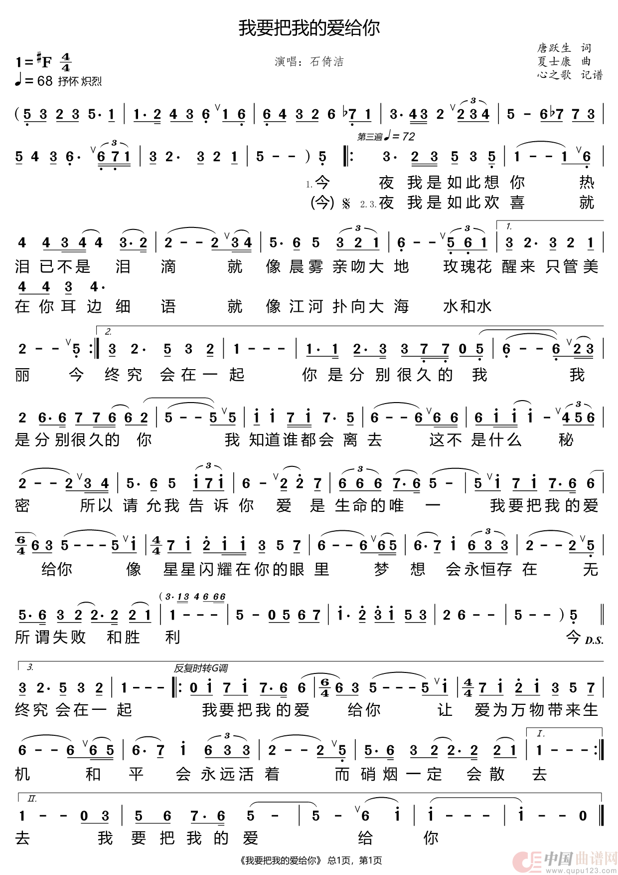 关于《我要把我的爱给你》曲谱的评论