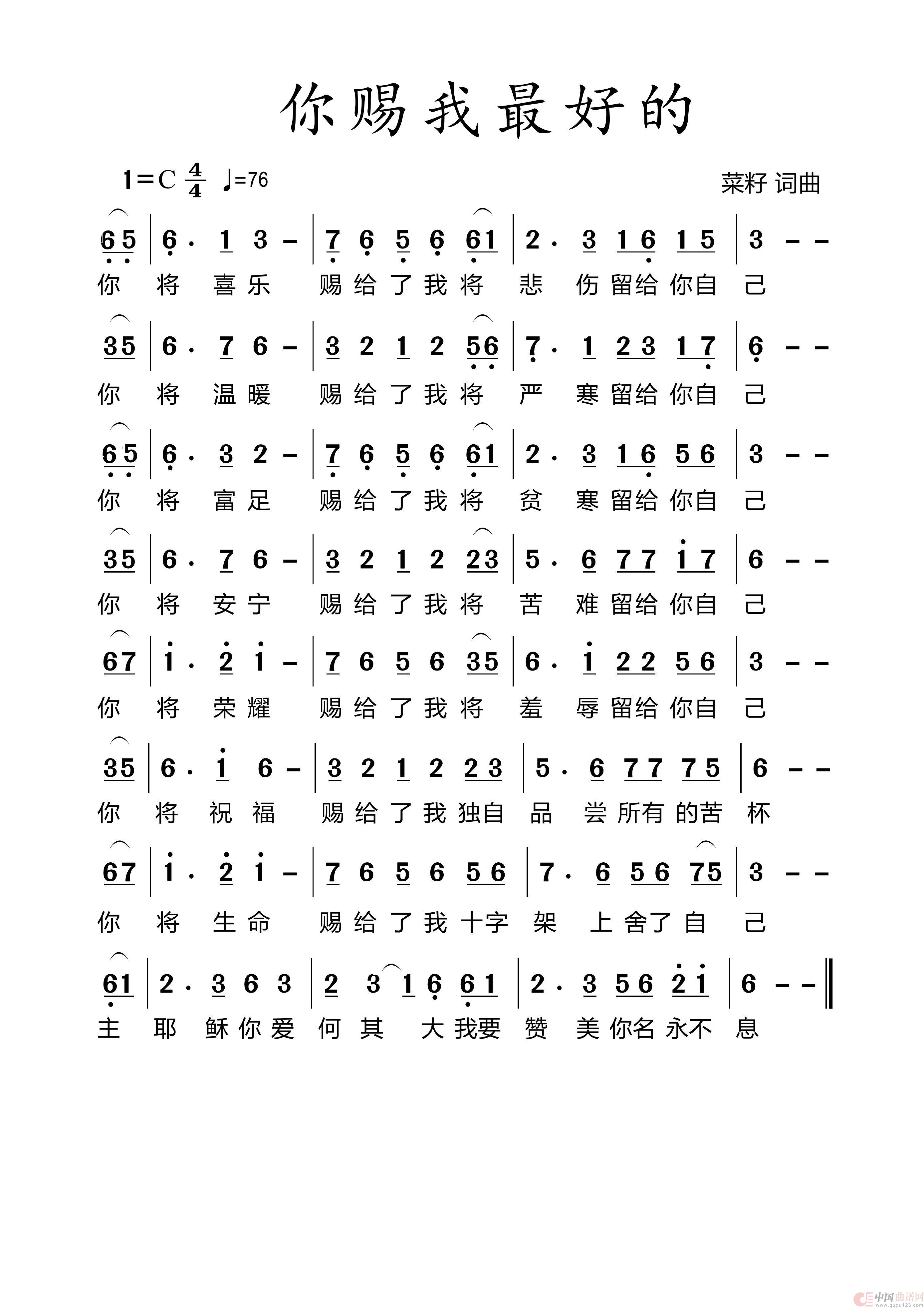 关于《752你赐我最好的》曲谱的评论