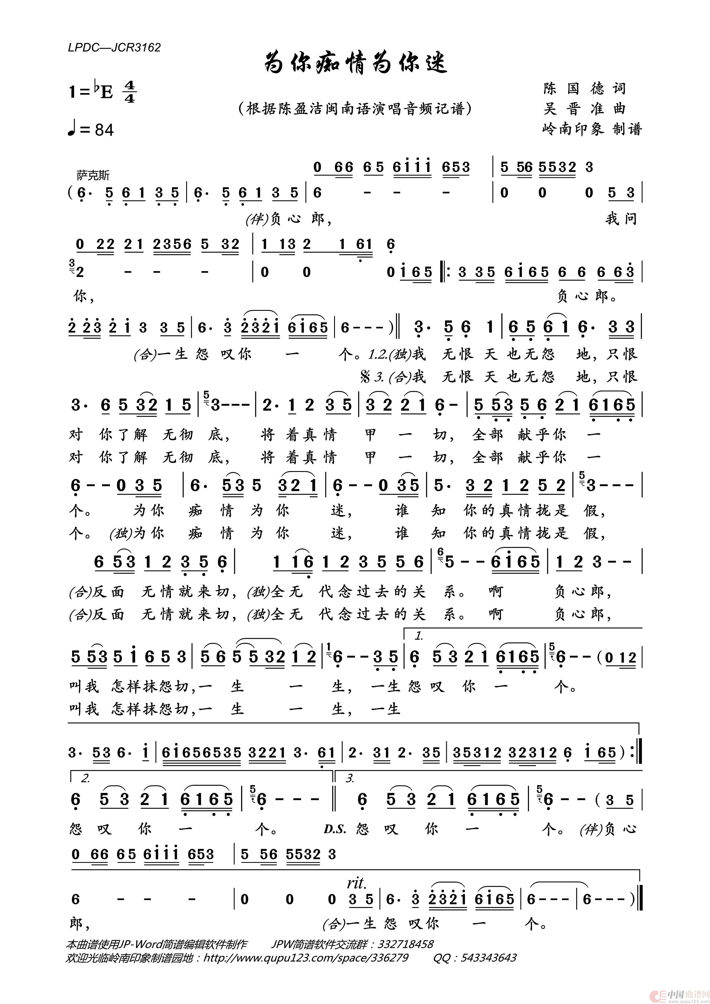 提示:在曲谱图片上单击右键,选择"图片另存为..."即可将曲谱保存到您的电脑中,打印时候可将图片插入到WORD中,调整合适大小打印即可。