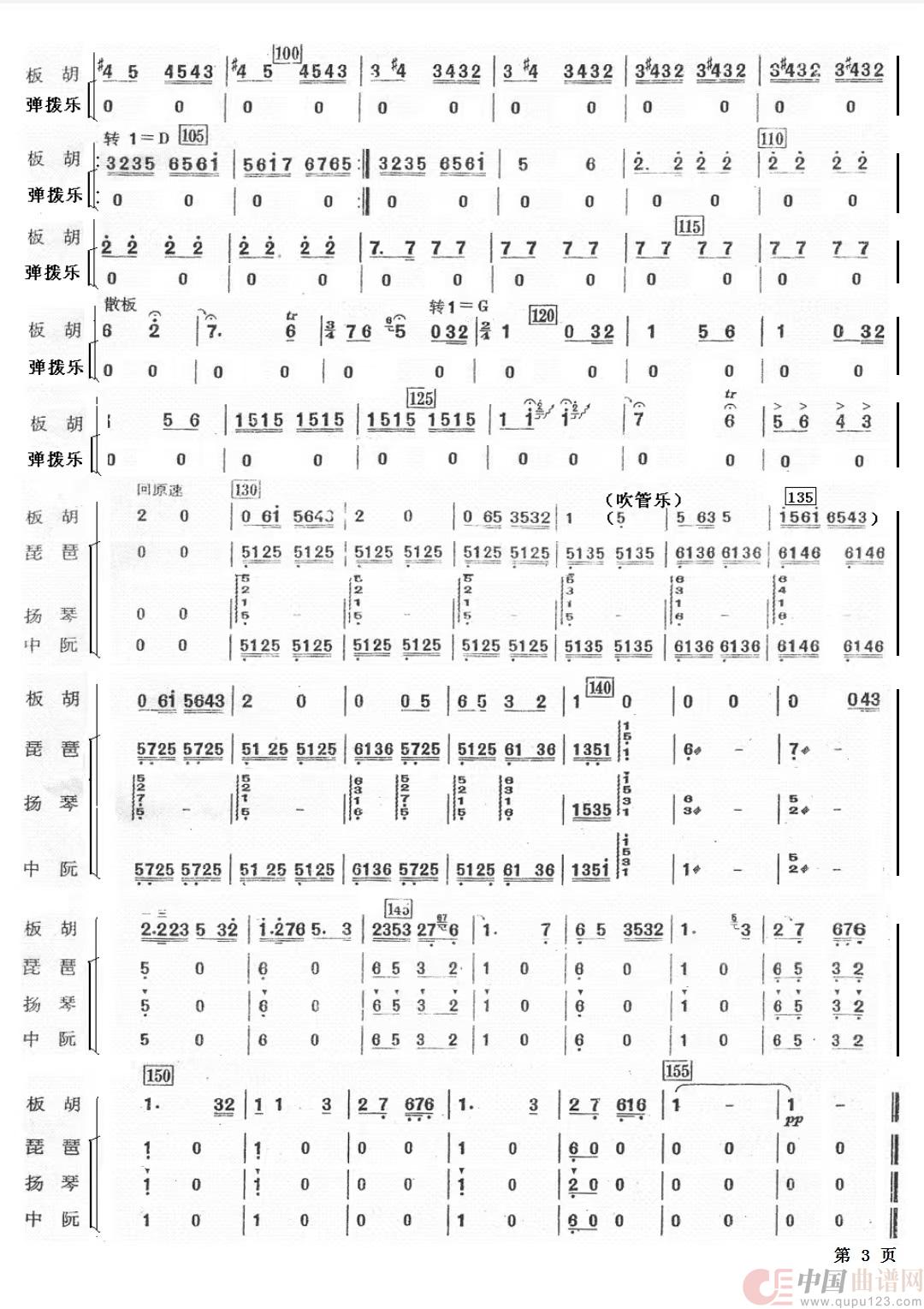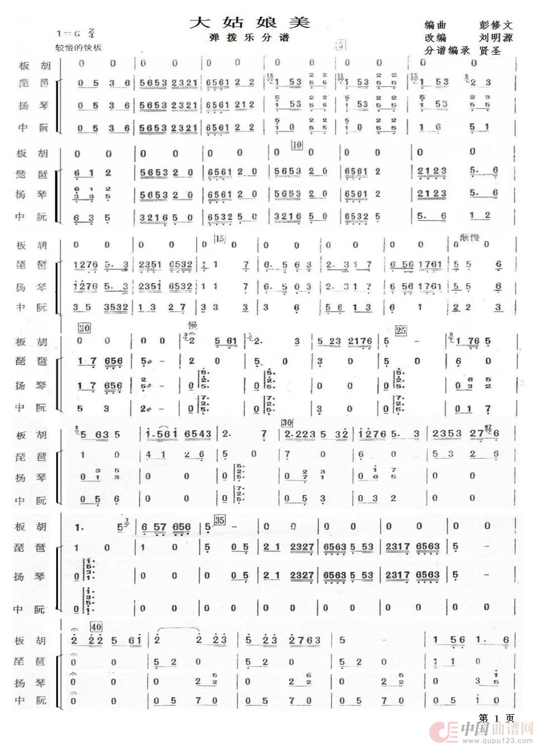 板胡与乐队 大姑娘美 弹拨乐分谱 分谱