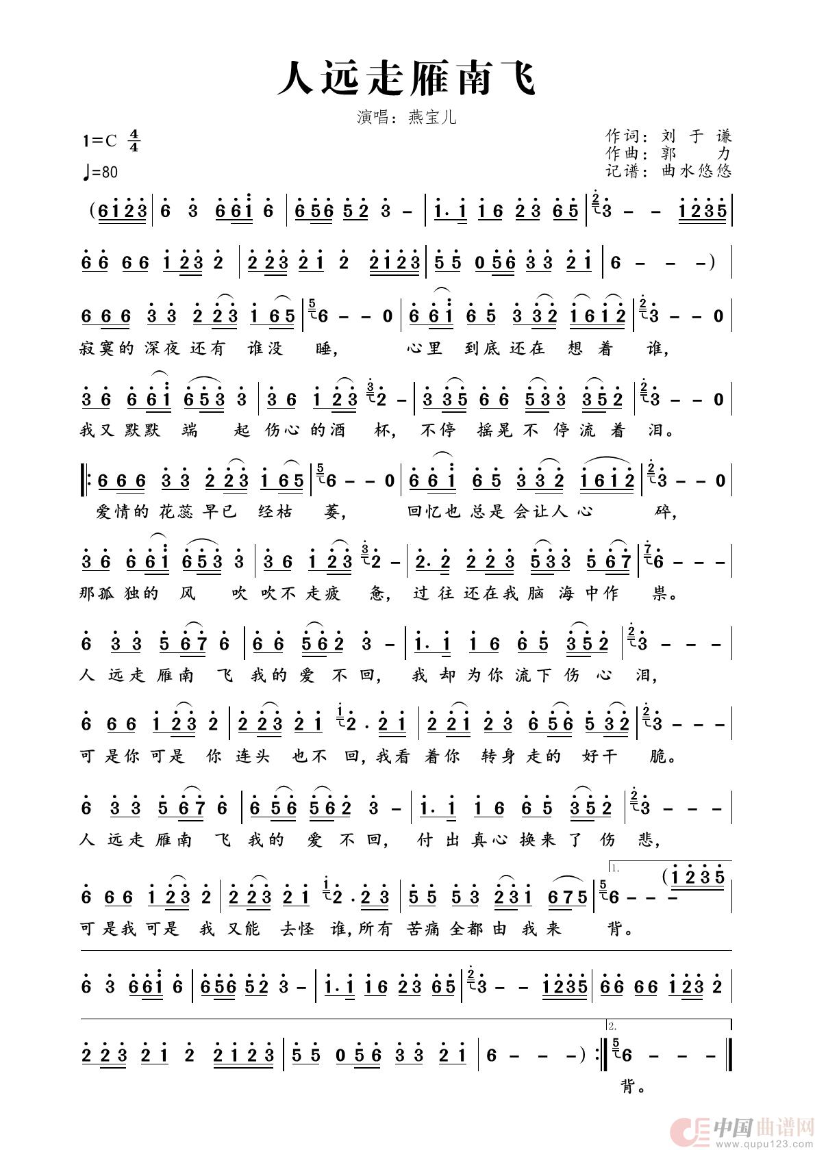 关于《人远走雁南飞》曲谱的评论