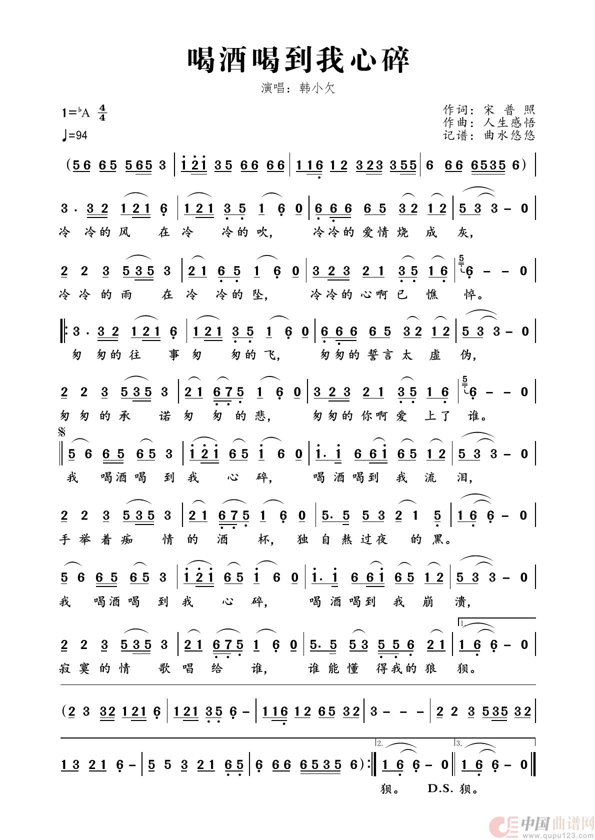 关于《喝酒喝到我心碎 (抒情版)》曲谱的评论