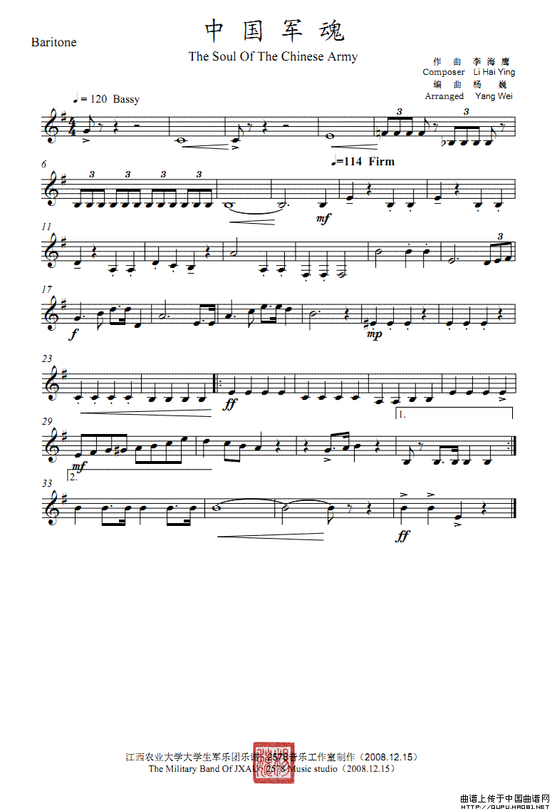 中国军魂(巴里东分谱、五线谱)