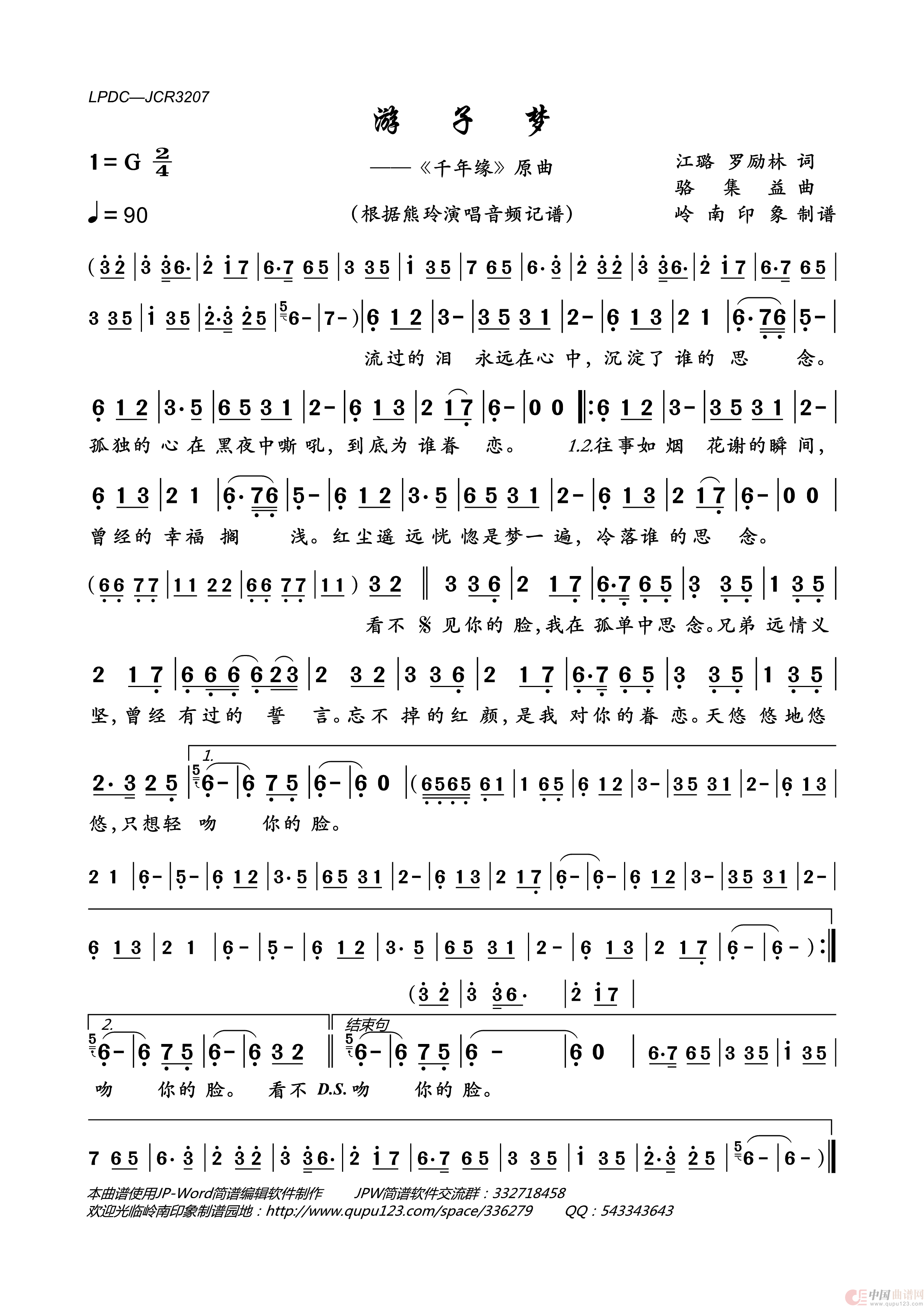 《游子梦》文本歌词