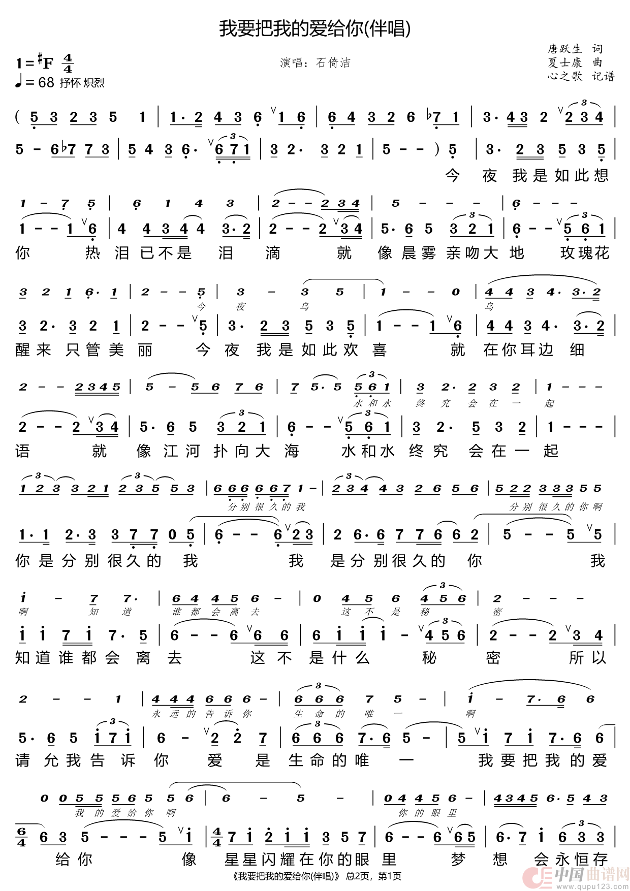 关于《我要把我的爱给你(伴唱)》曲谱的评论
