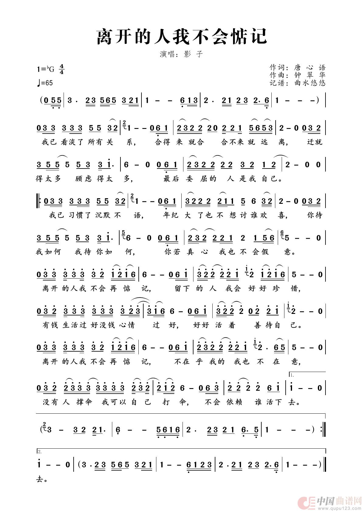 关于《离开的人我不会惦记》曲谱的评论