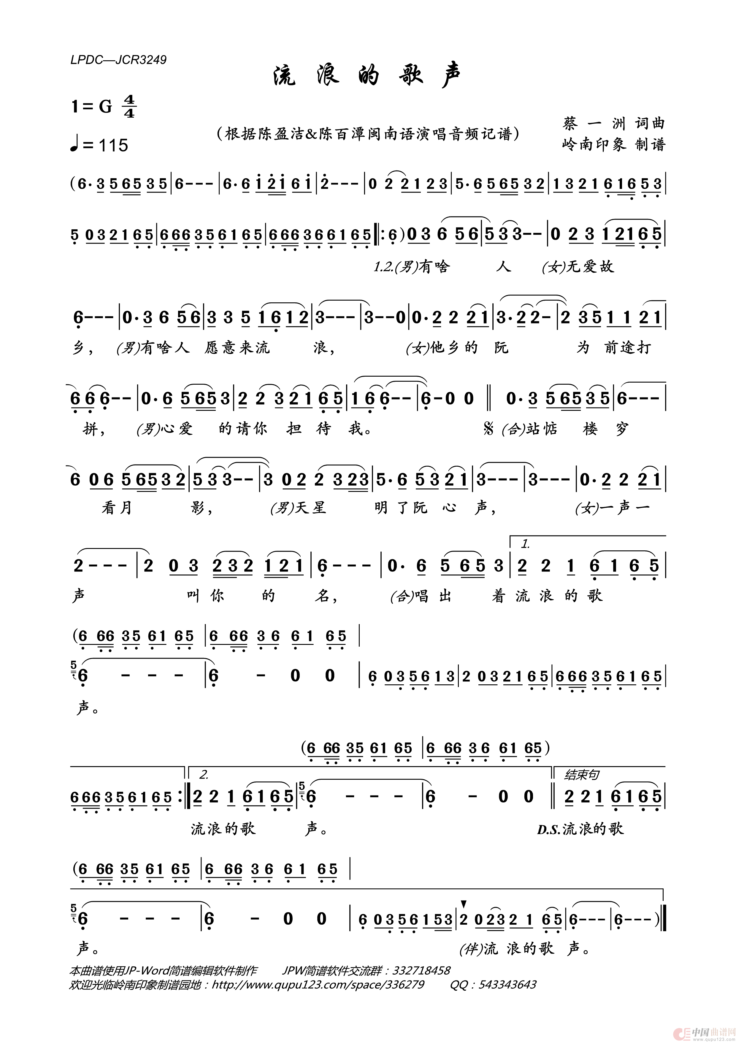 (合)唱出着流浪的歌声。