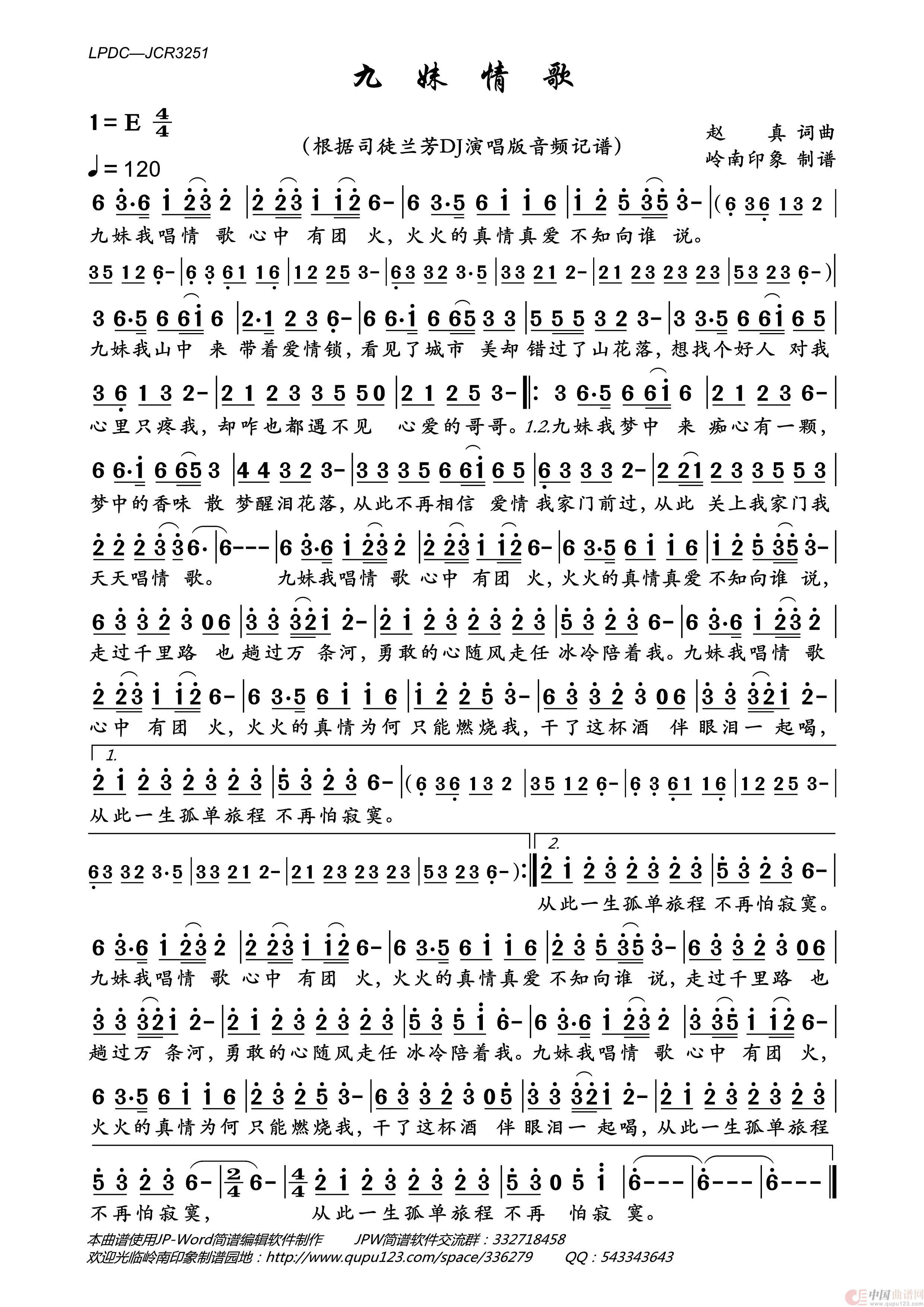 《九妹情歌》文本歌词