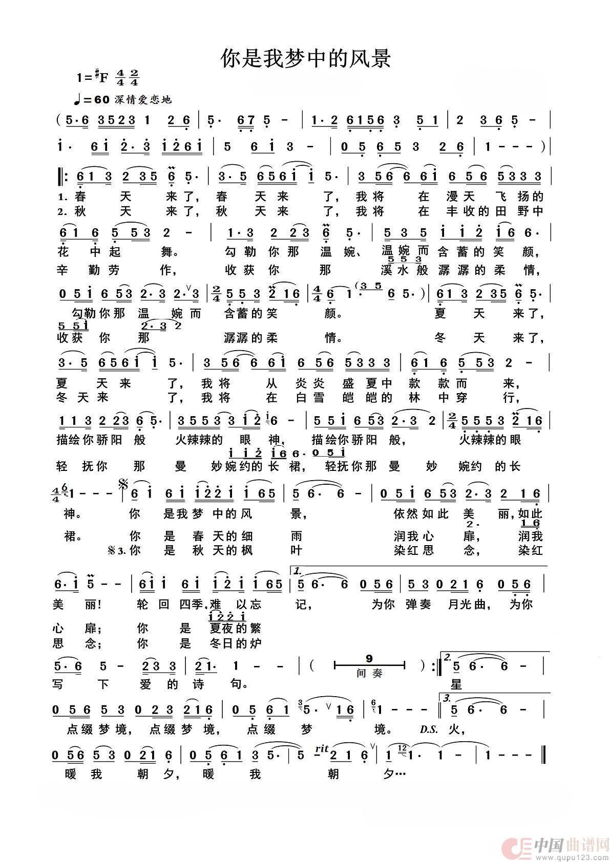 关于《你是我梦中的风景》曲谱的评论