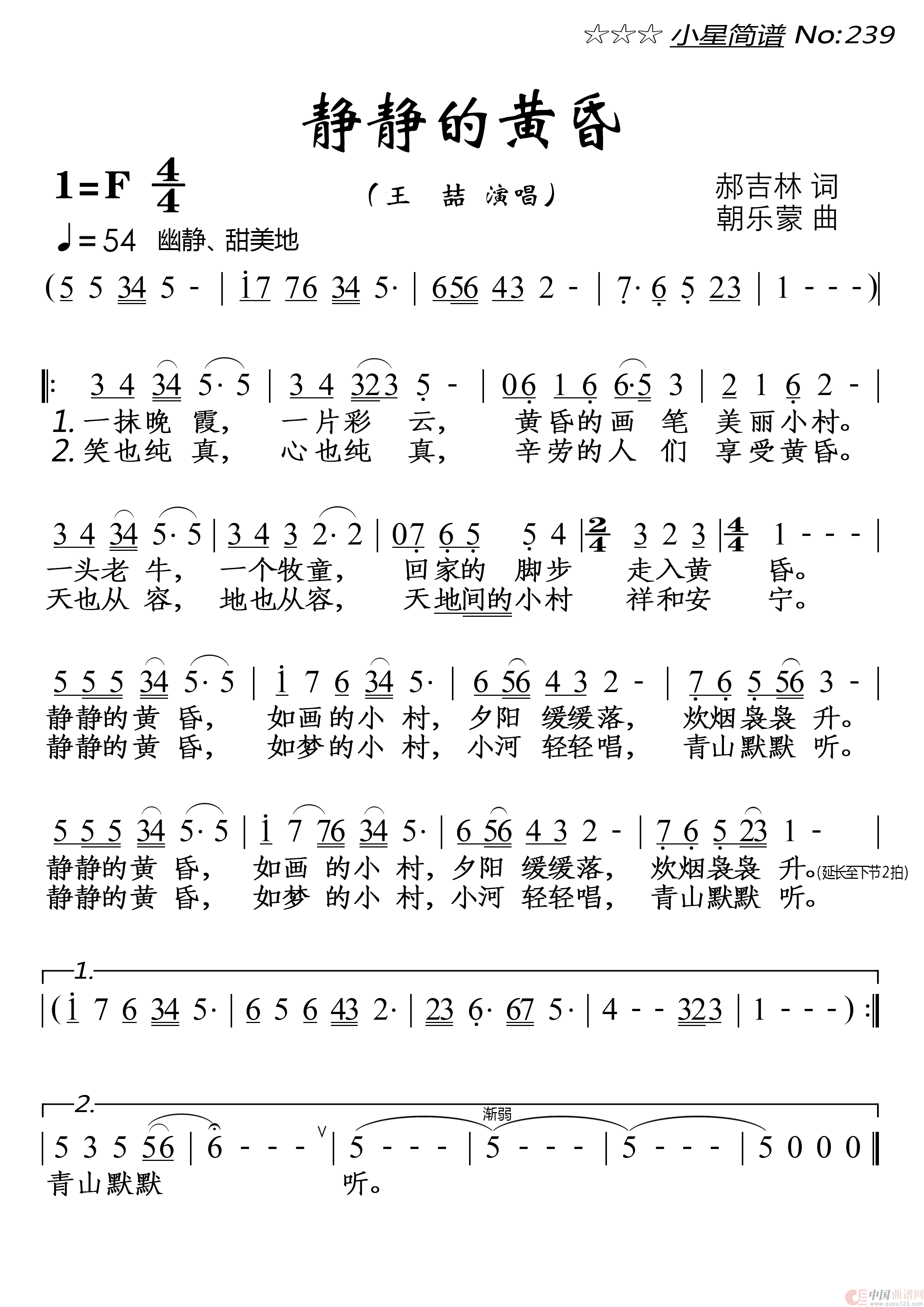 关于《静静的黄昏》曲谱的评论