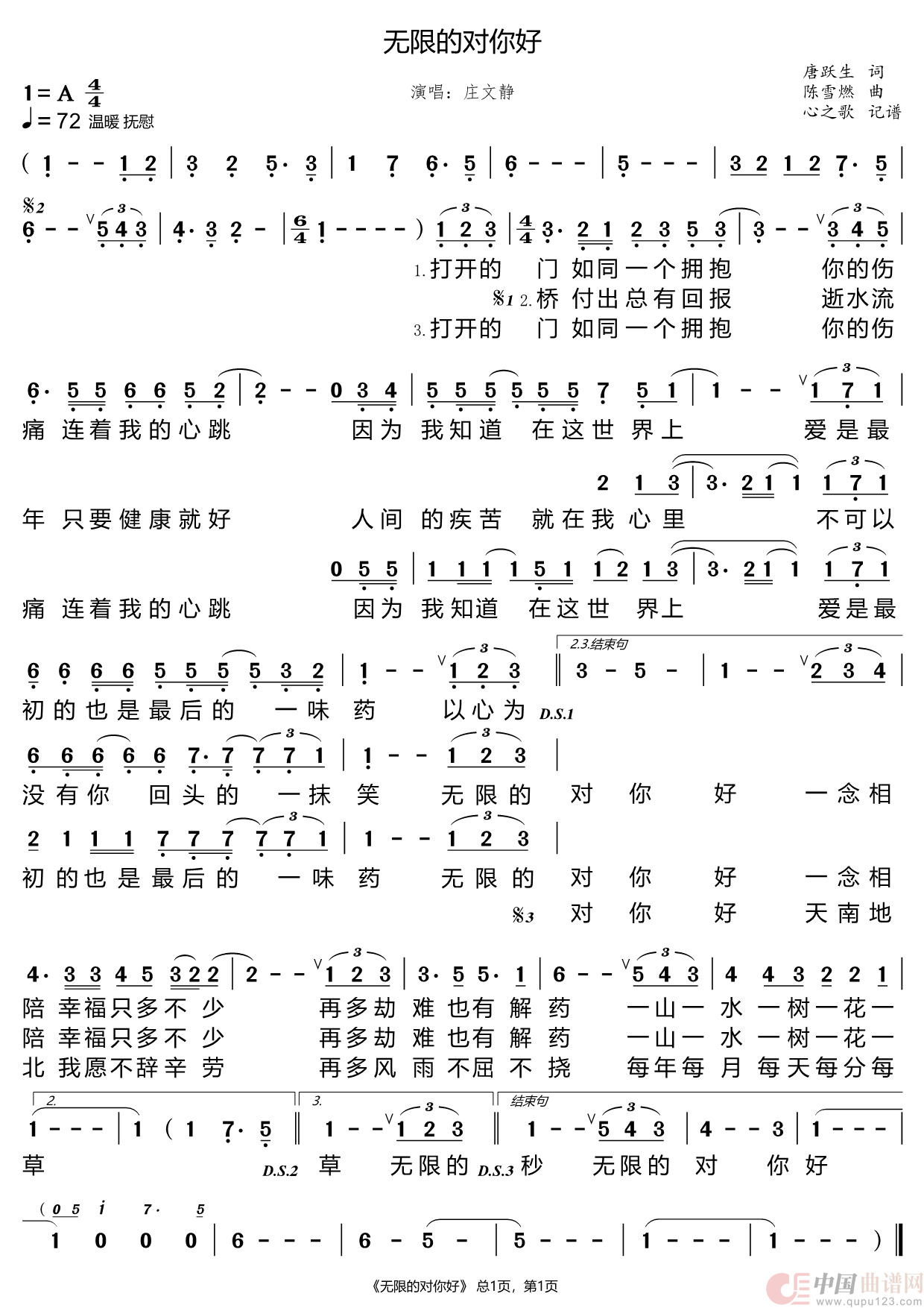 关于《无限的对你好》曲谱的评论