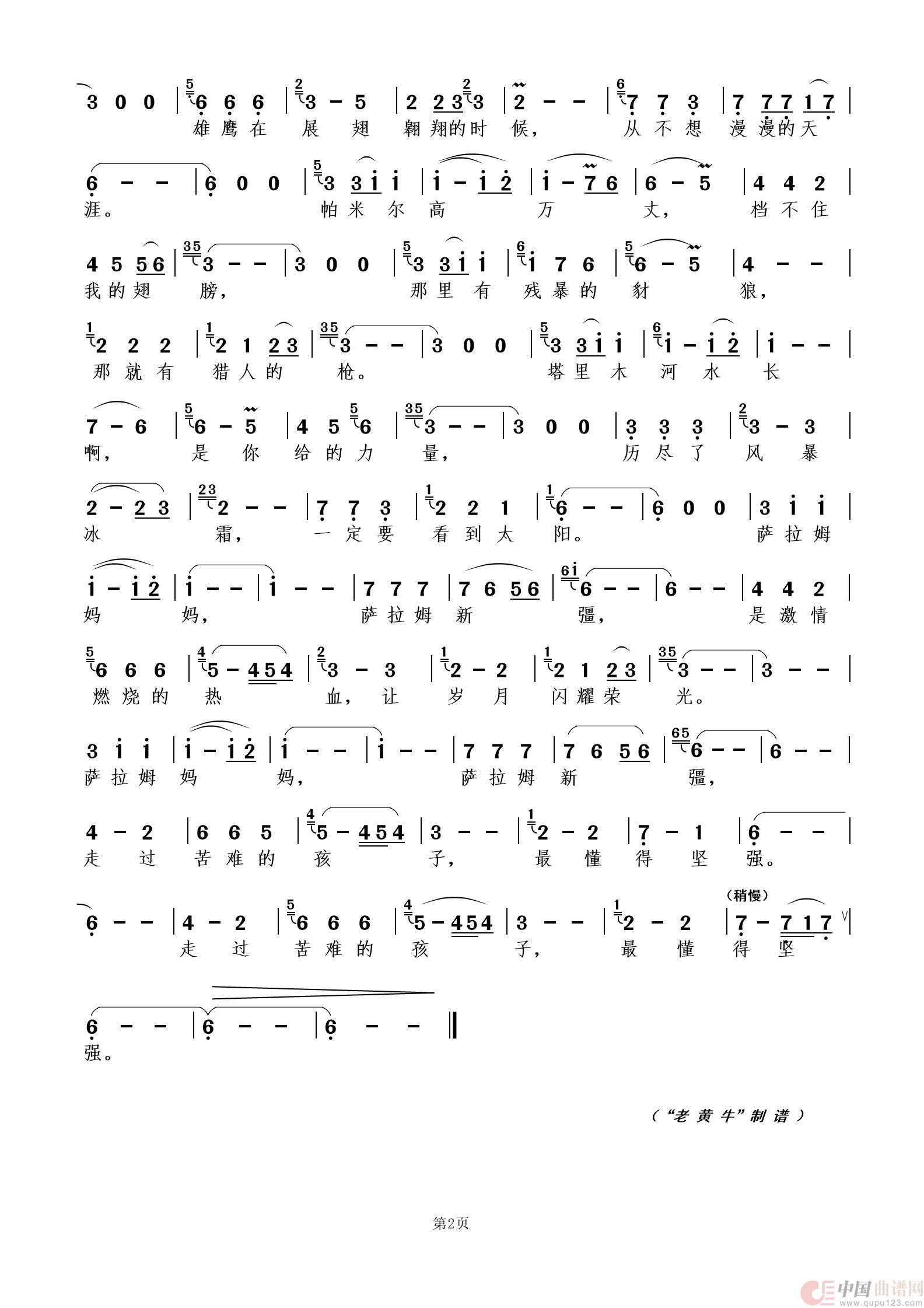 提示:在曲谱图片上单击右键,选择"图片另存为..."即可将曲谱保存到您的电脑中,打印时候可将图片插入到WORD中,调整合适大小打印即可。