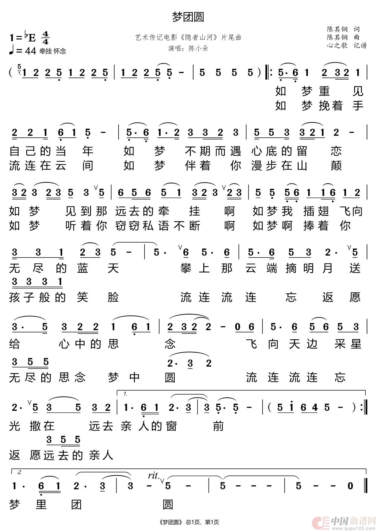 关于《梦团圆》曲谱的评论