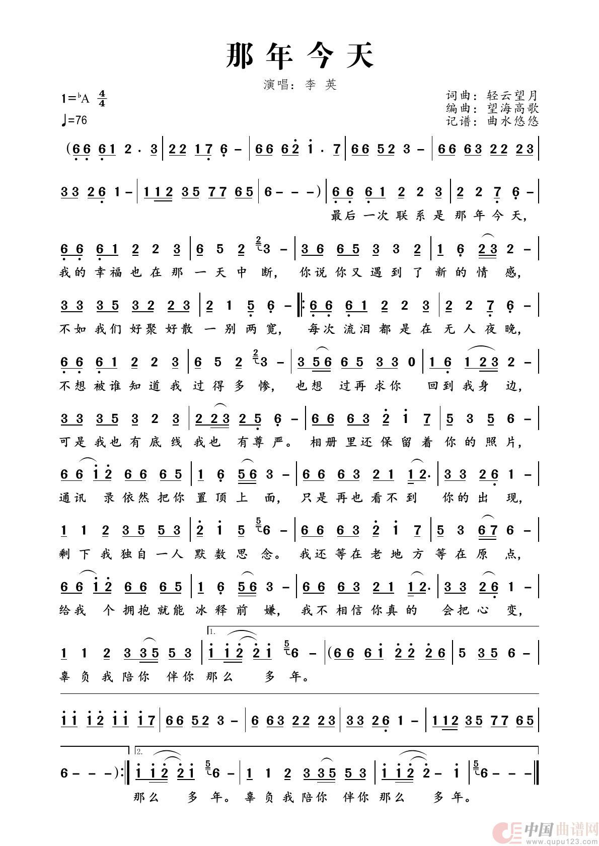 关于《那年今天》曲谱的评论