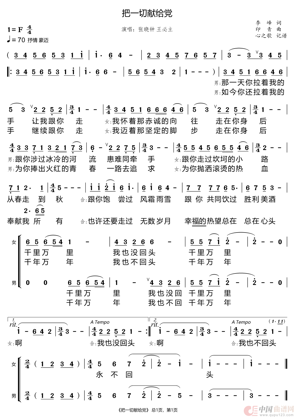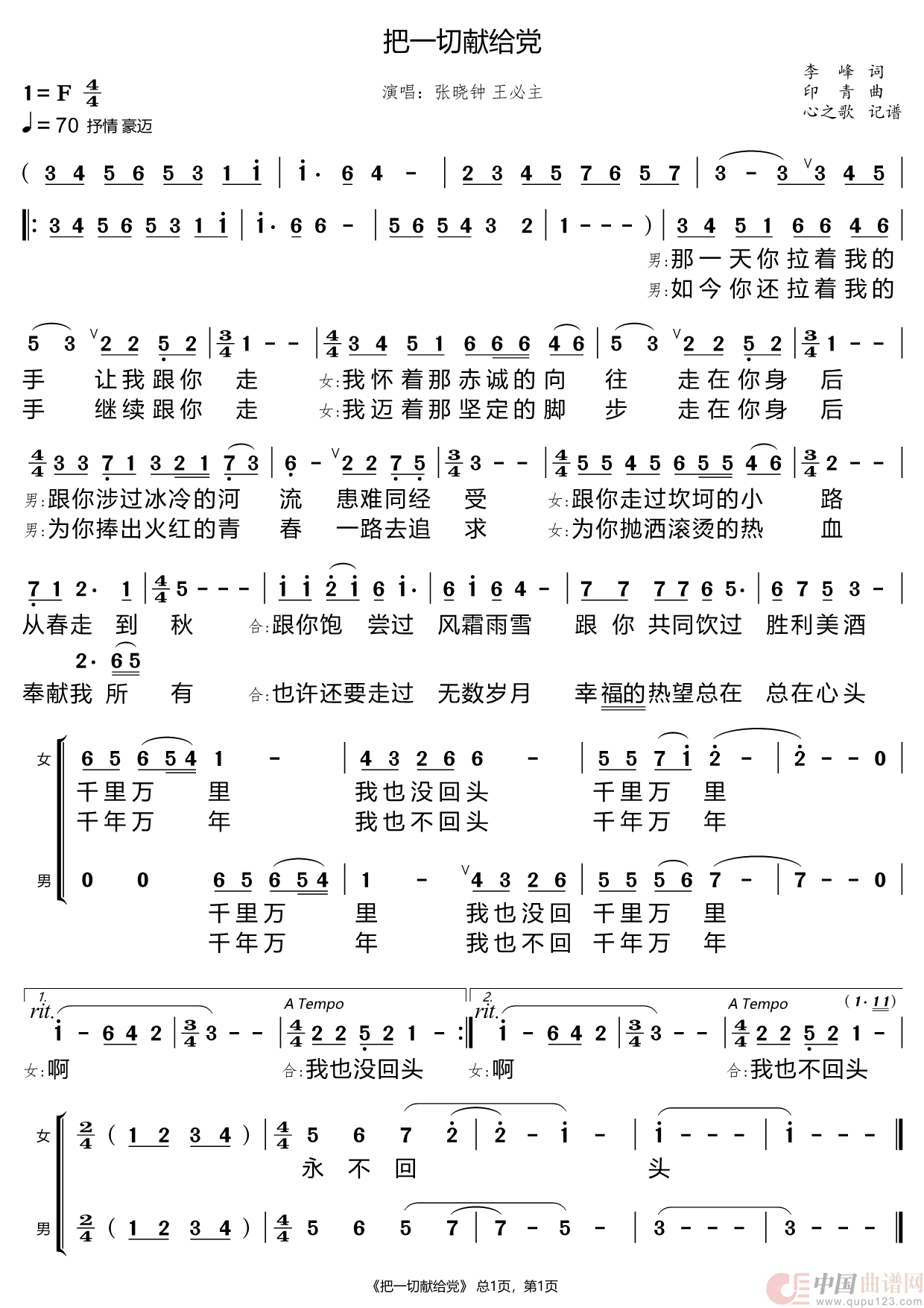 把一切献给党(张晓钟 王必主)