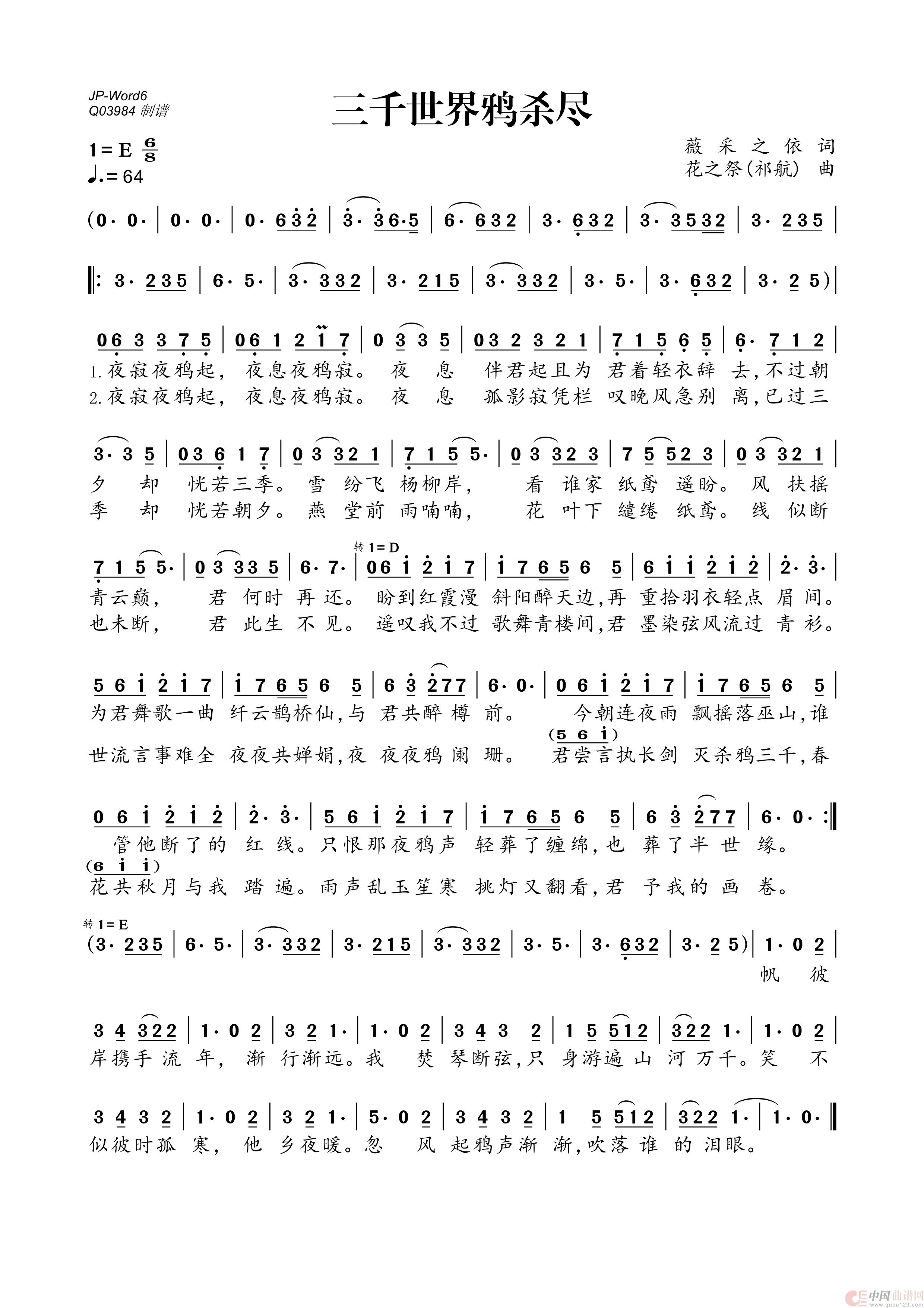 关于《三千世界鸦杀尽》曲谱的评论