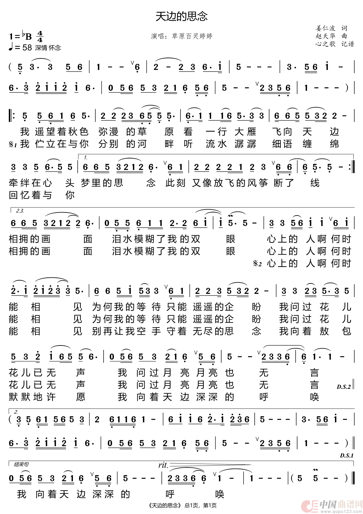 关于《天边的思念》曲谱的评论
