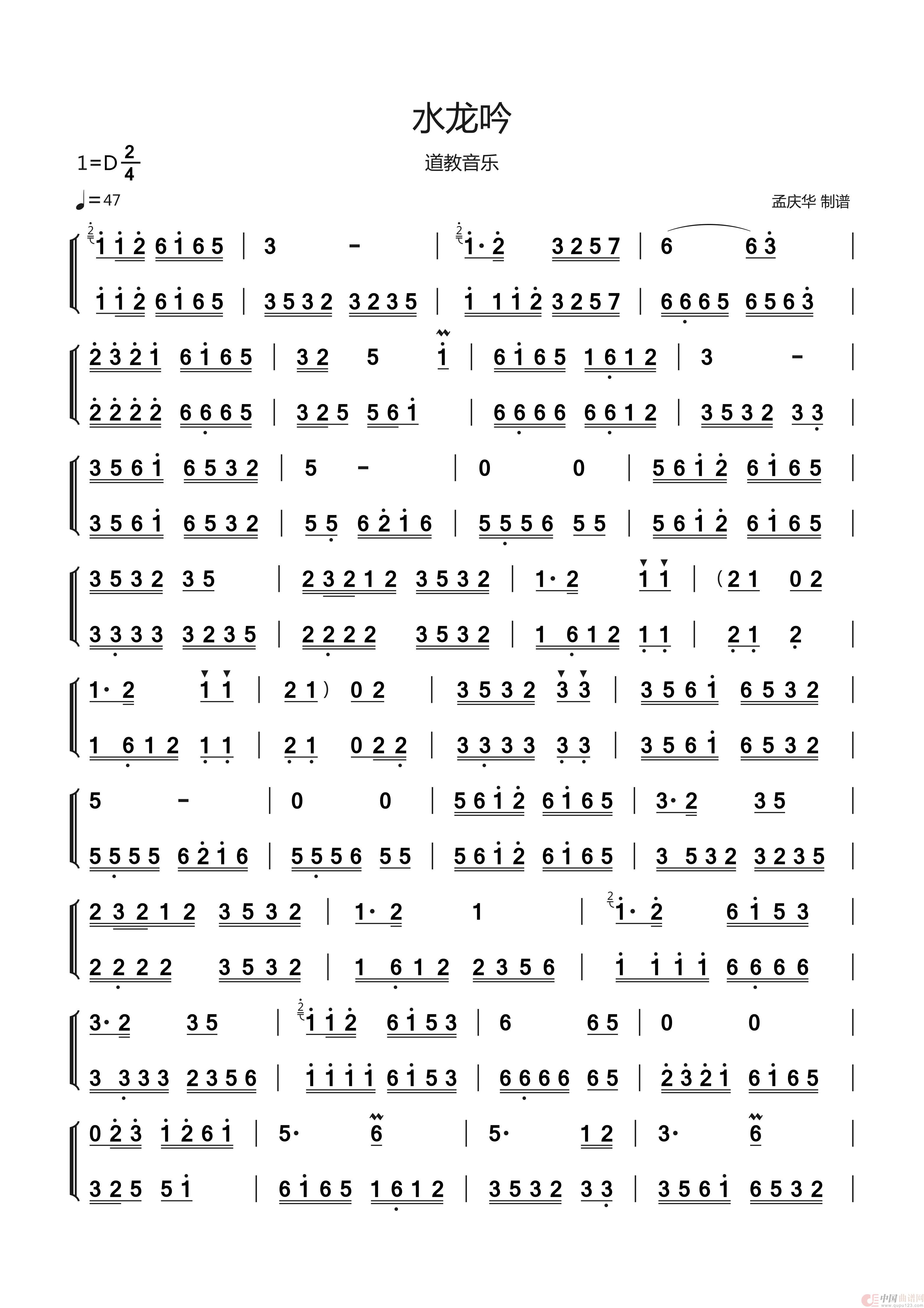 提示:在曲谱图片上单击右键,选择"图片另存为..."即可将曲谱保存到您的电脑中,打印时候可将图片插入到WORD中,调整合适大小打印即可。