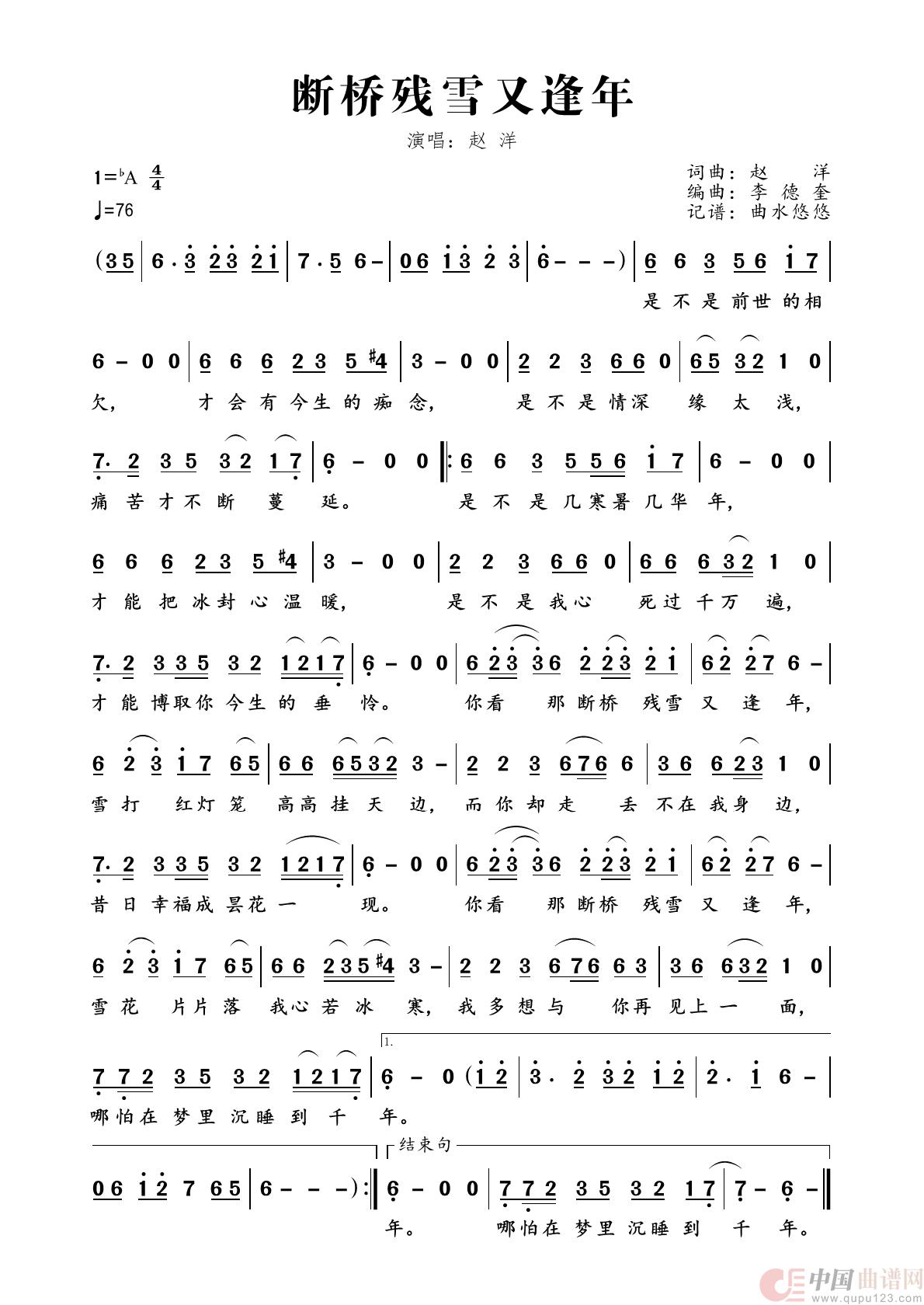 关于《断桥残雪又逢年》曲谱的评论