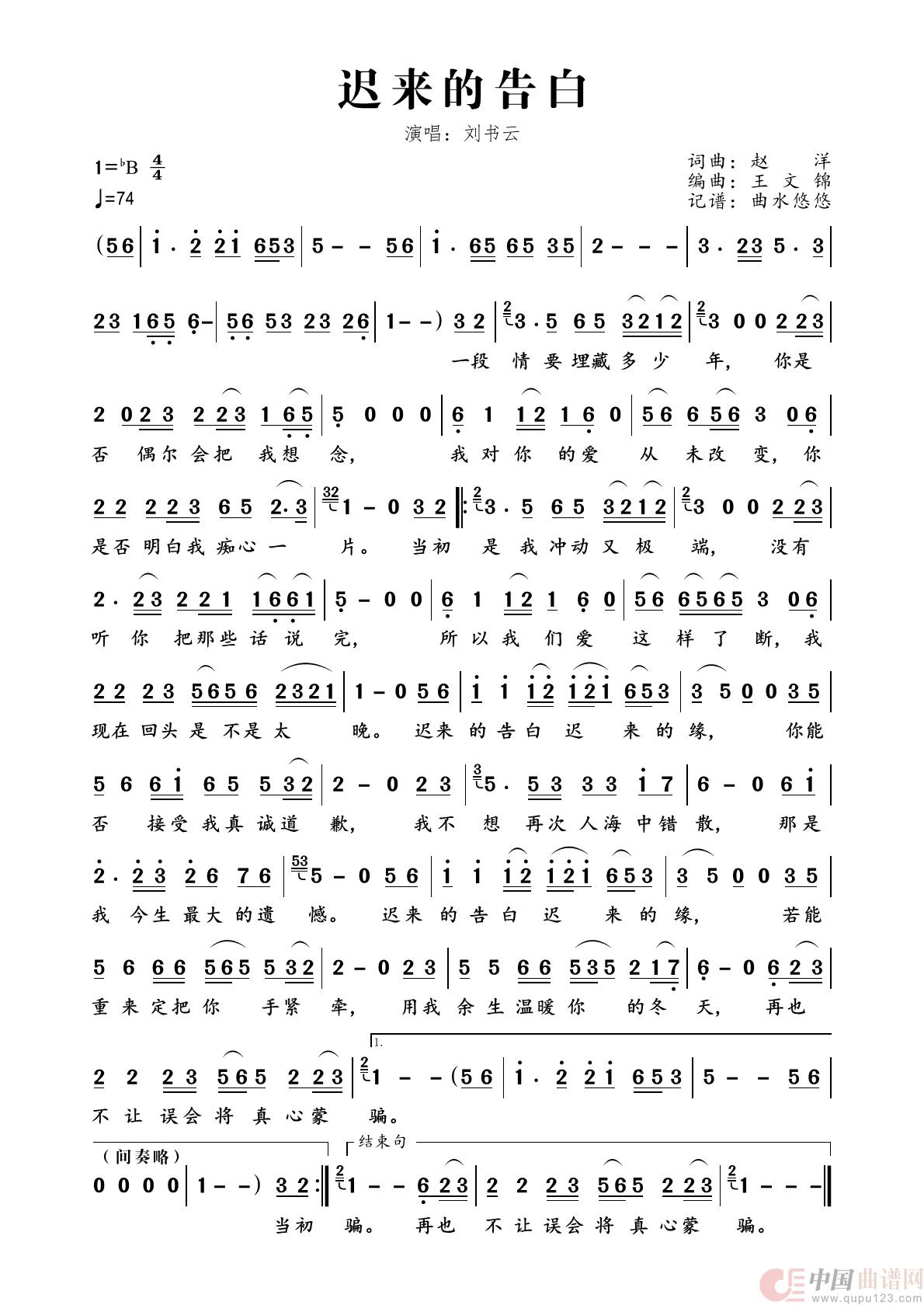 关于《迟来的告白》曲谱的评论