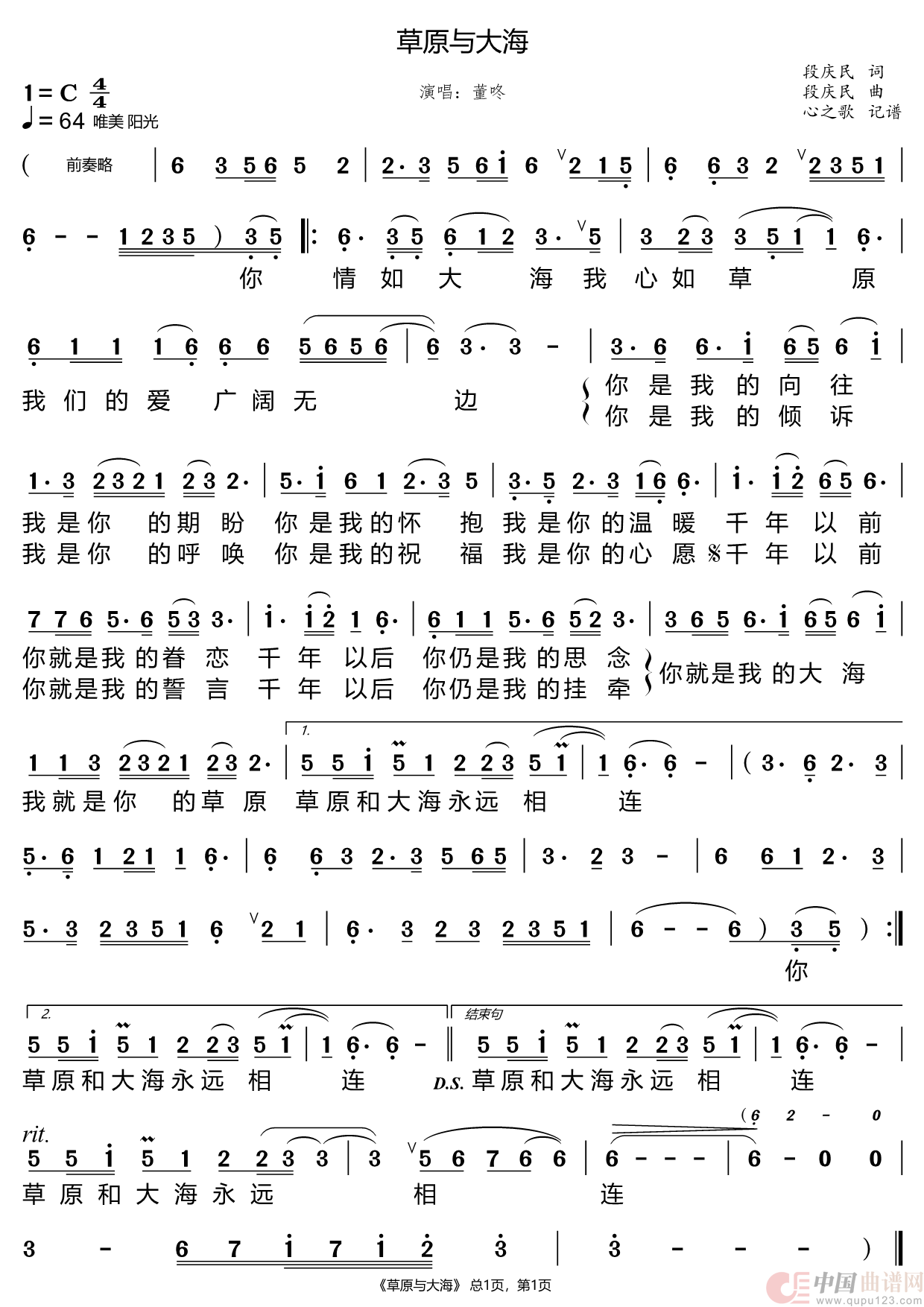关于《草原与大海》曲谱的评论