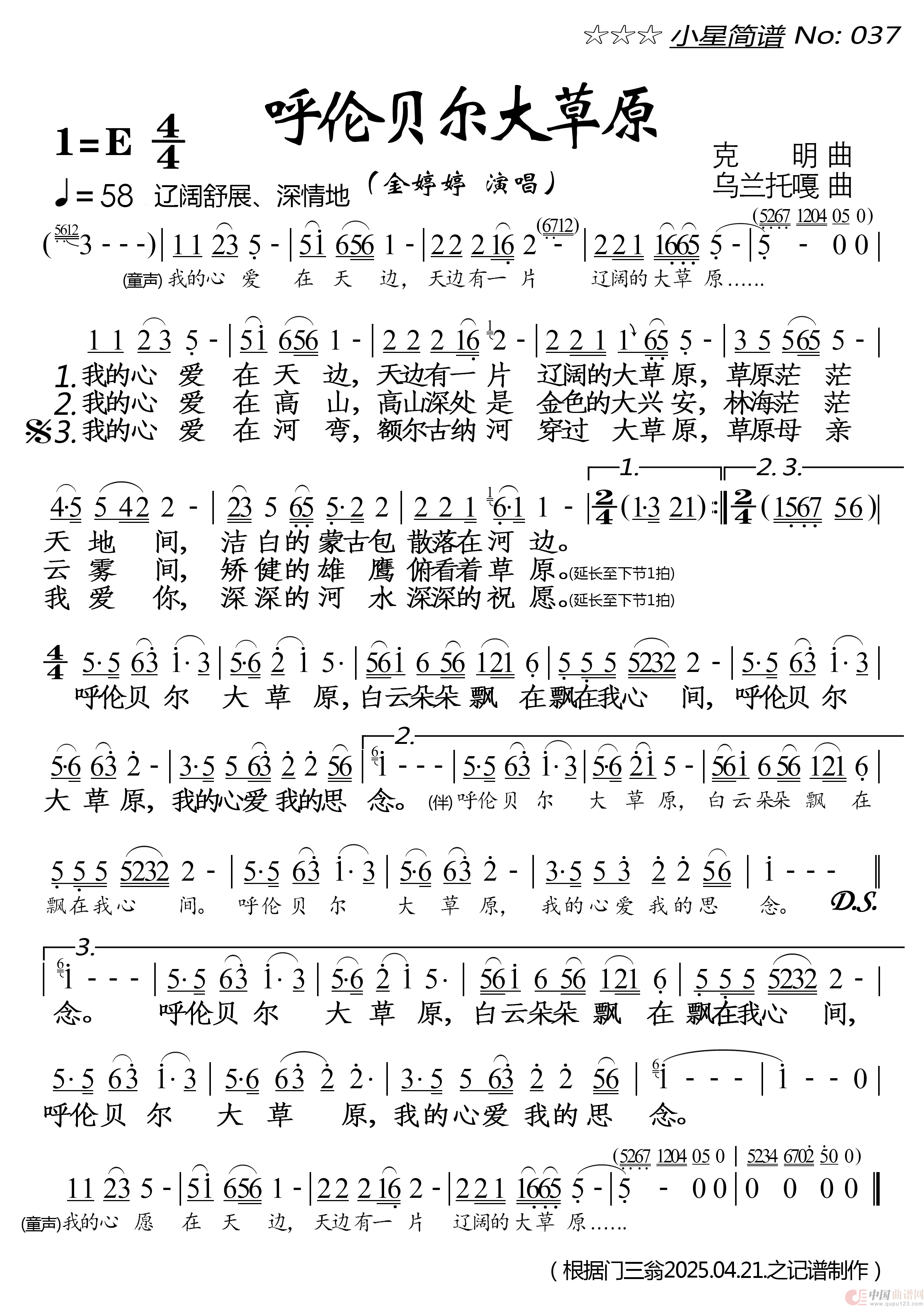 关于《呼伦贝尔大草原》曲谱的评论