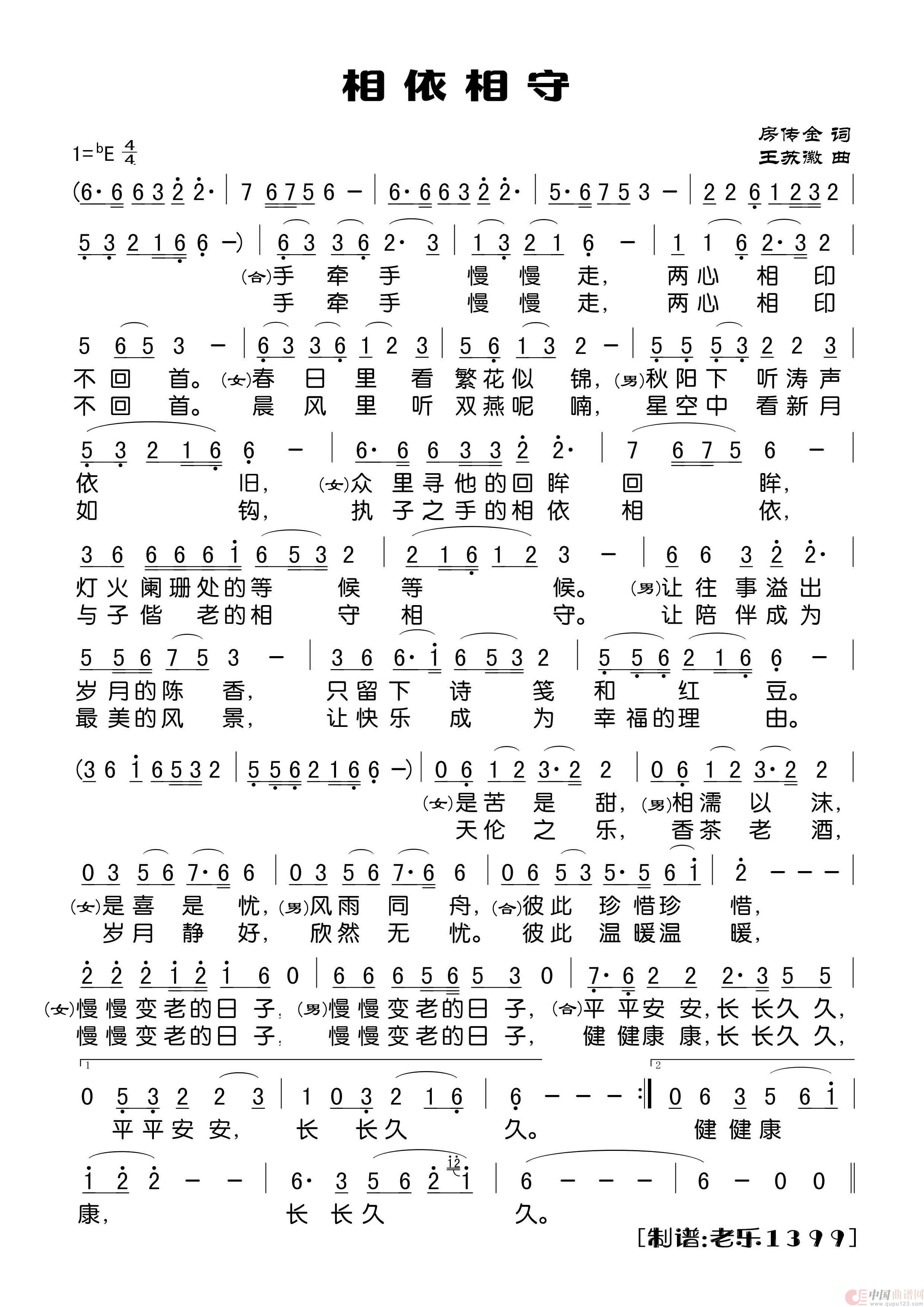 作词:房传金 作曲:王苏徽 演唱(奏):江虹妖/冰冰火 来源:根据拌音视频记谱 上传:老乐1399
