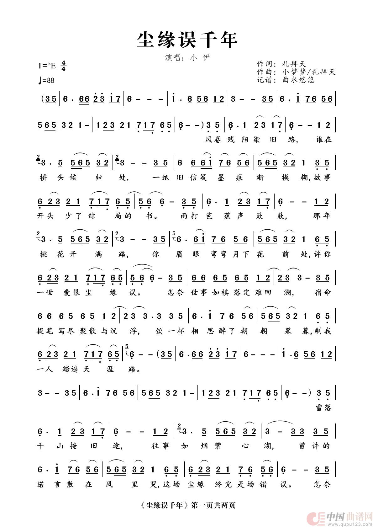 作词:礼拜天 作曲:小梦梦/礼拜天 演唱(奏):小伊 来源:谱友曲水悠悠上传 上传:曲水悠悠