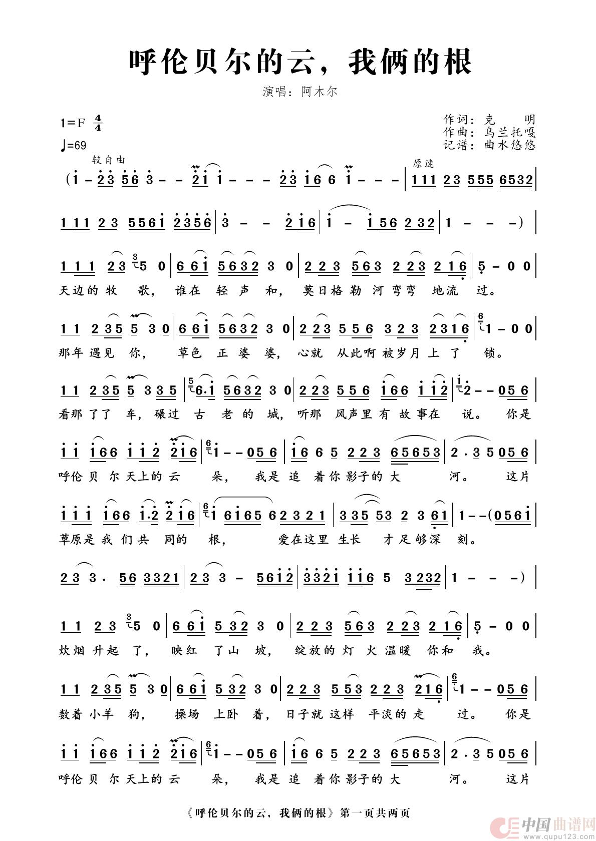 关于《呼伦贝尔的云,我俩的根》曲谱的评论