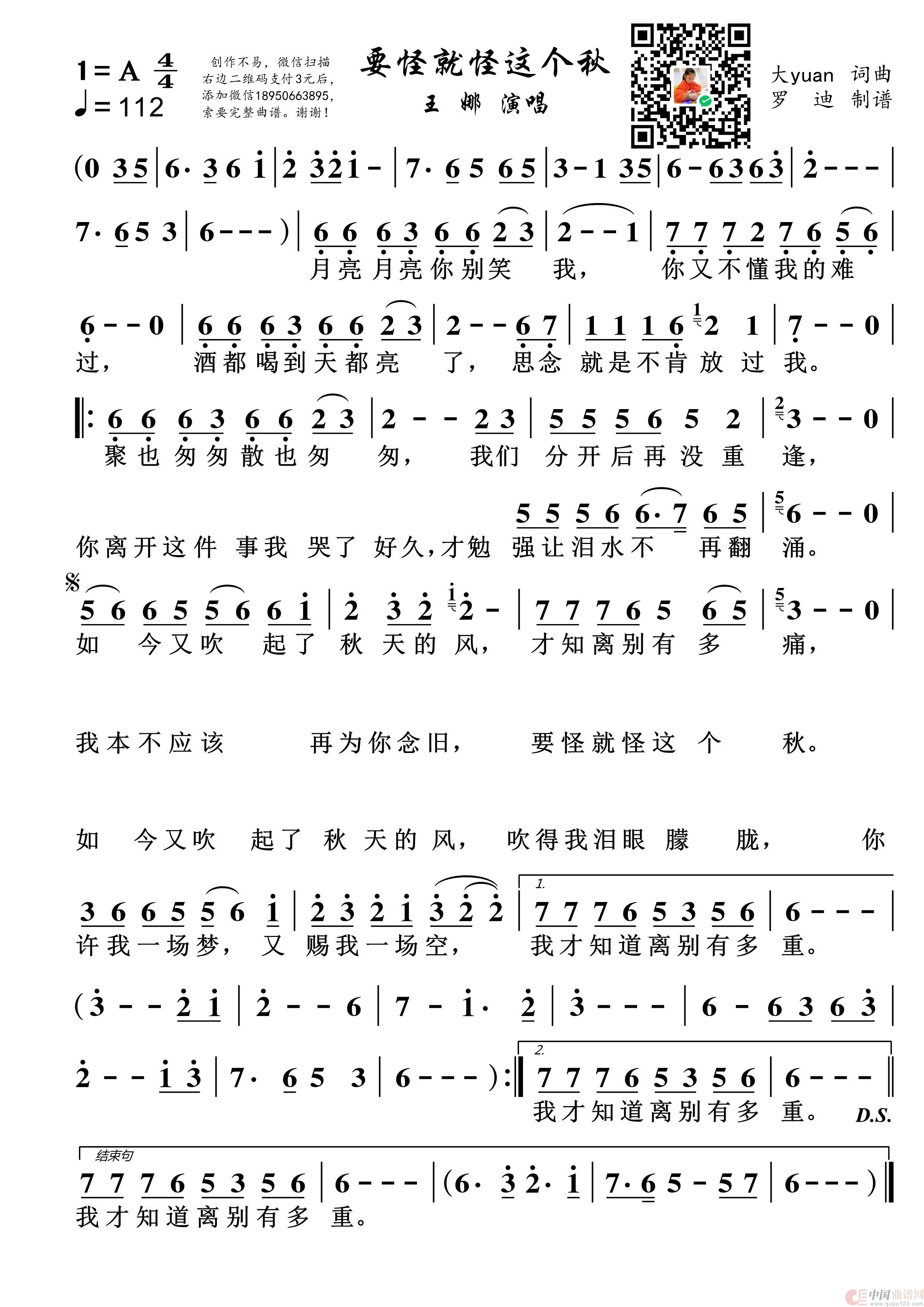 关于《要怪就怪这个秋》曲谱的评论