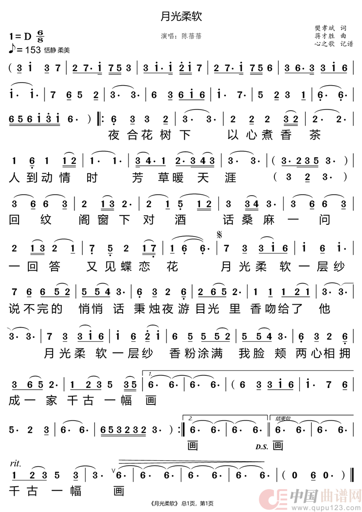 关于《月光柔软》曲谱的评论