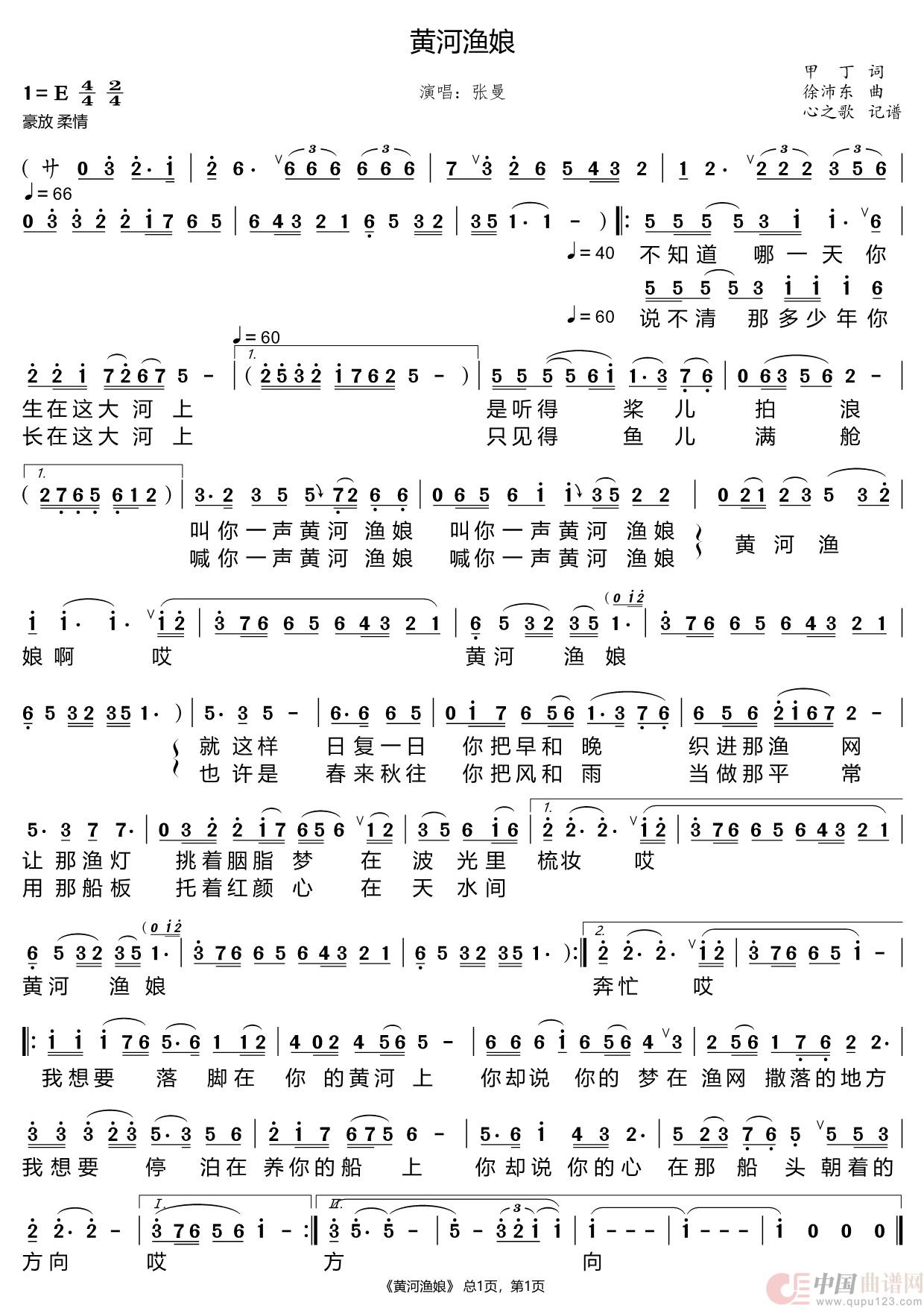 关于《黄河渔娘》曲谱的评论