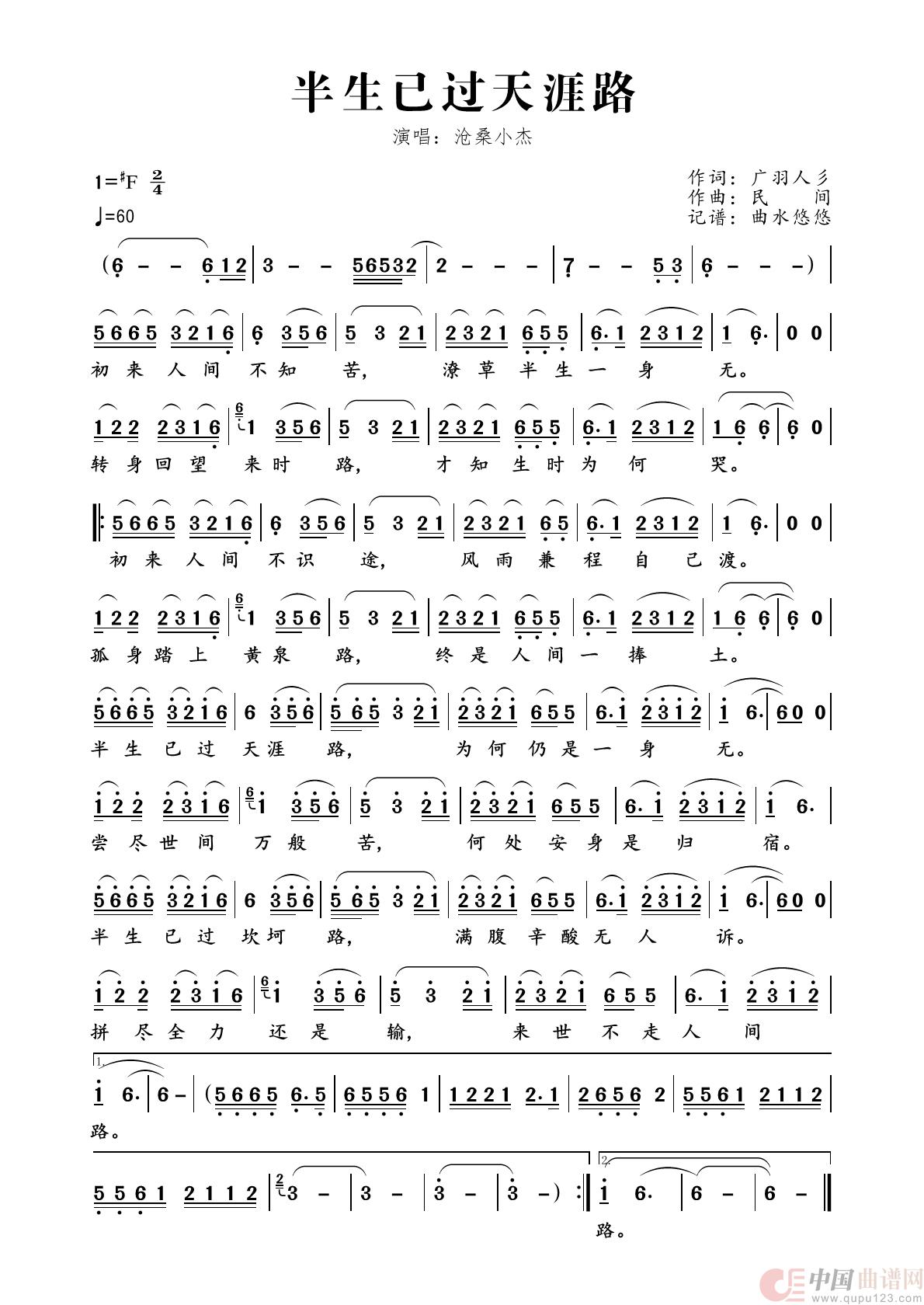 关于《半生已过天涯路》曲谱的评论