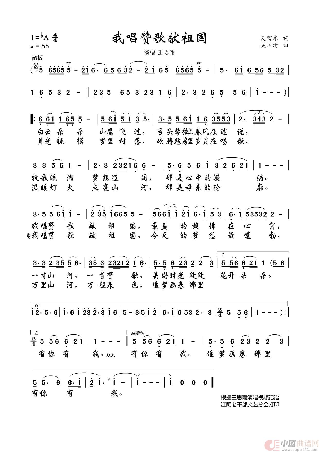 关于《我唱赞歌献祖国》曲谱的评论