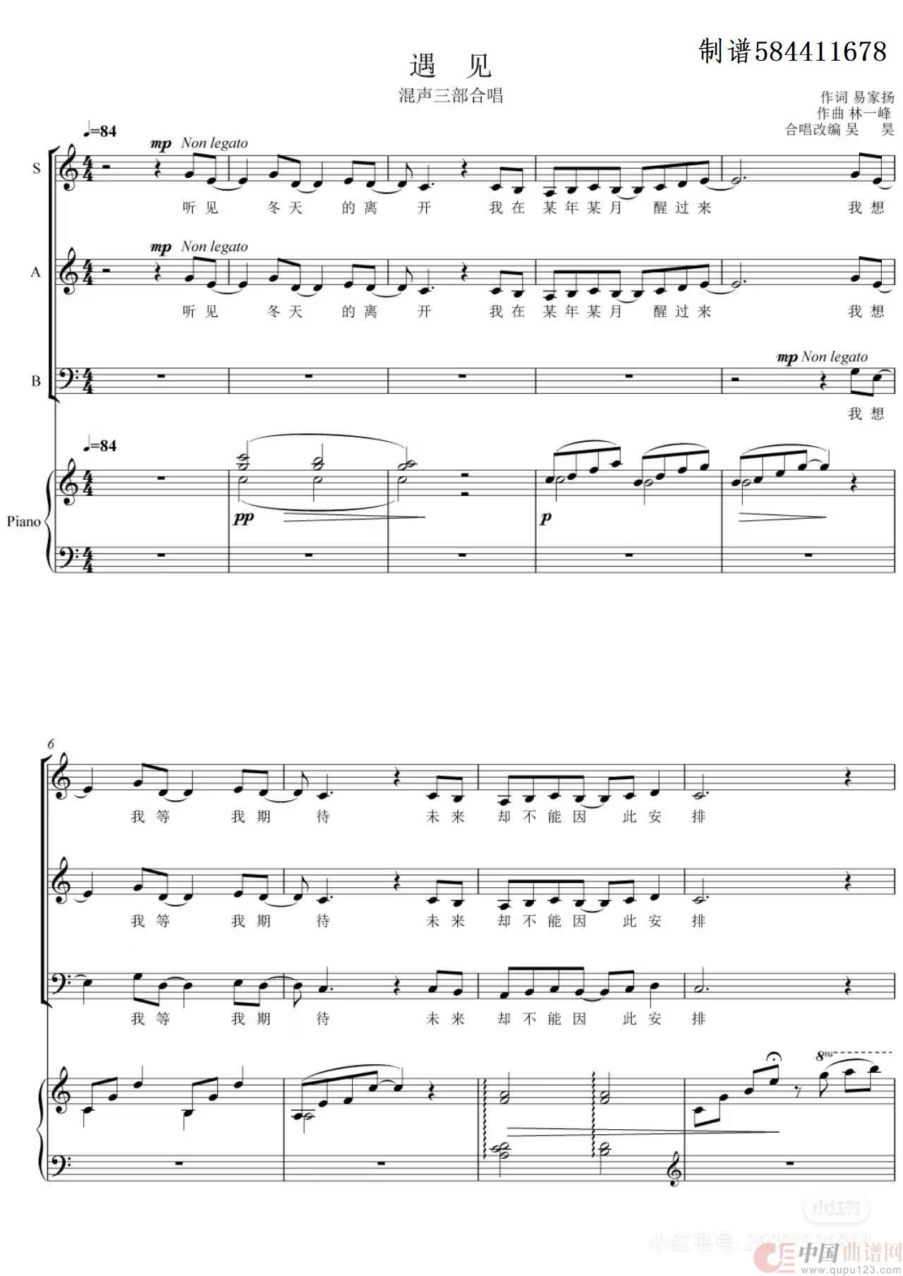 遇见三部合唱谱SAB