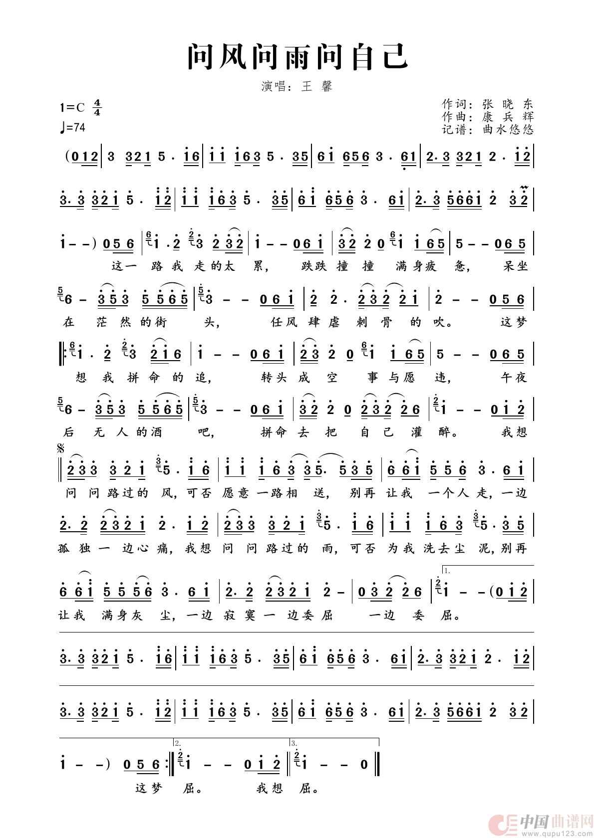 关于《问风问雨问自己》曲谱的评论